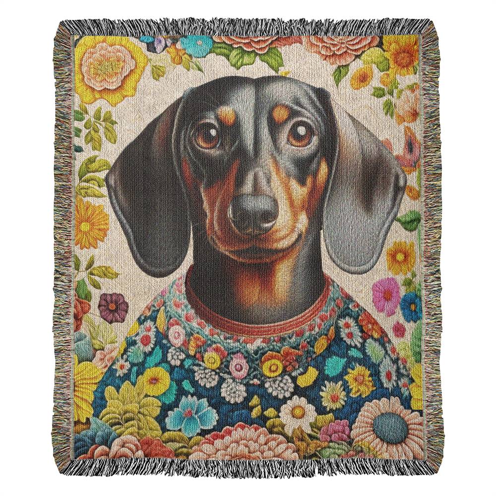 "Proud" Wire-Haired Dachshund Black & White Linocut Woven Blanket