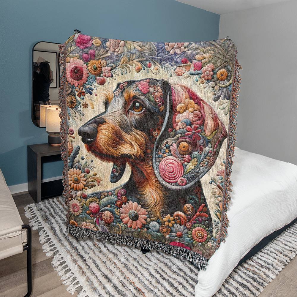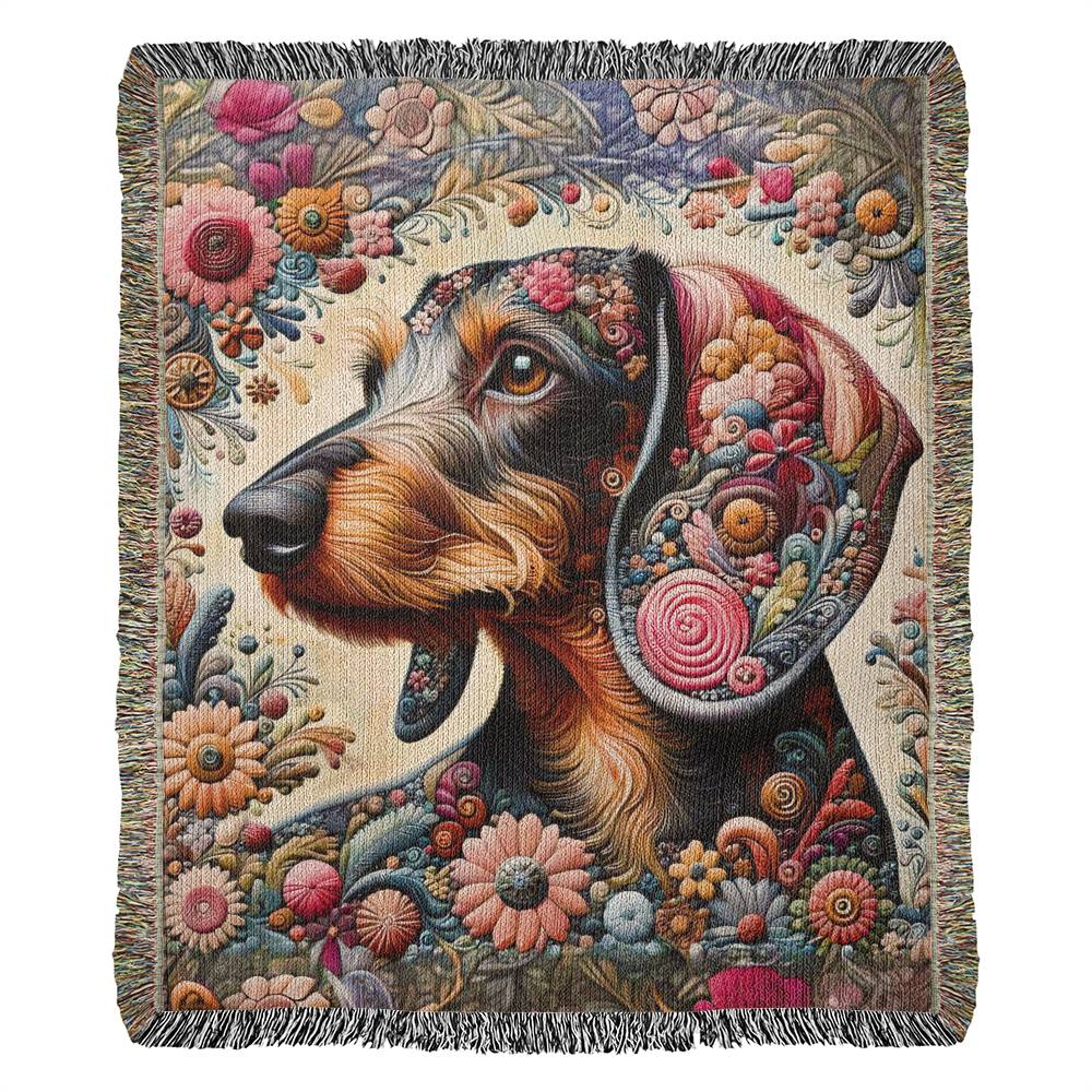 "Blooming" Wire-Haired Dachshund Floral Embroidery Inspired Woven Blanket