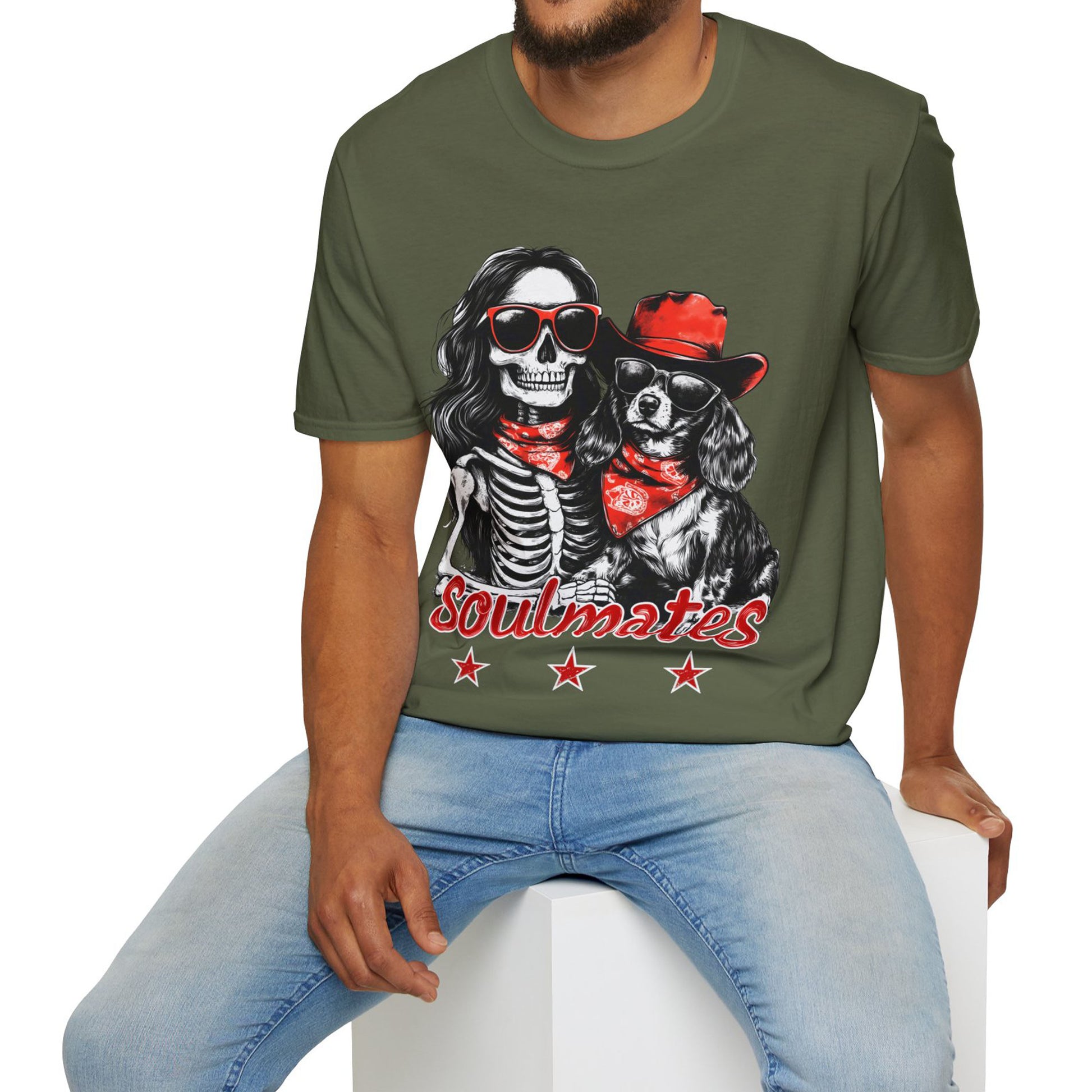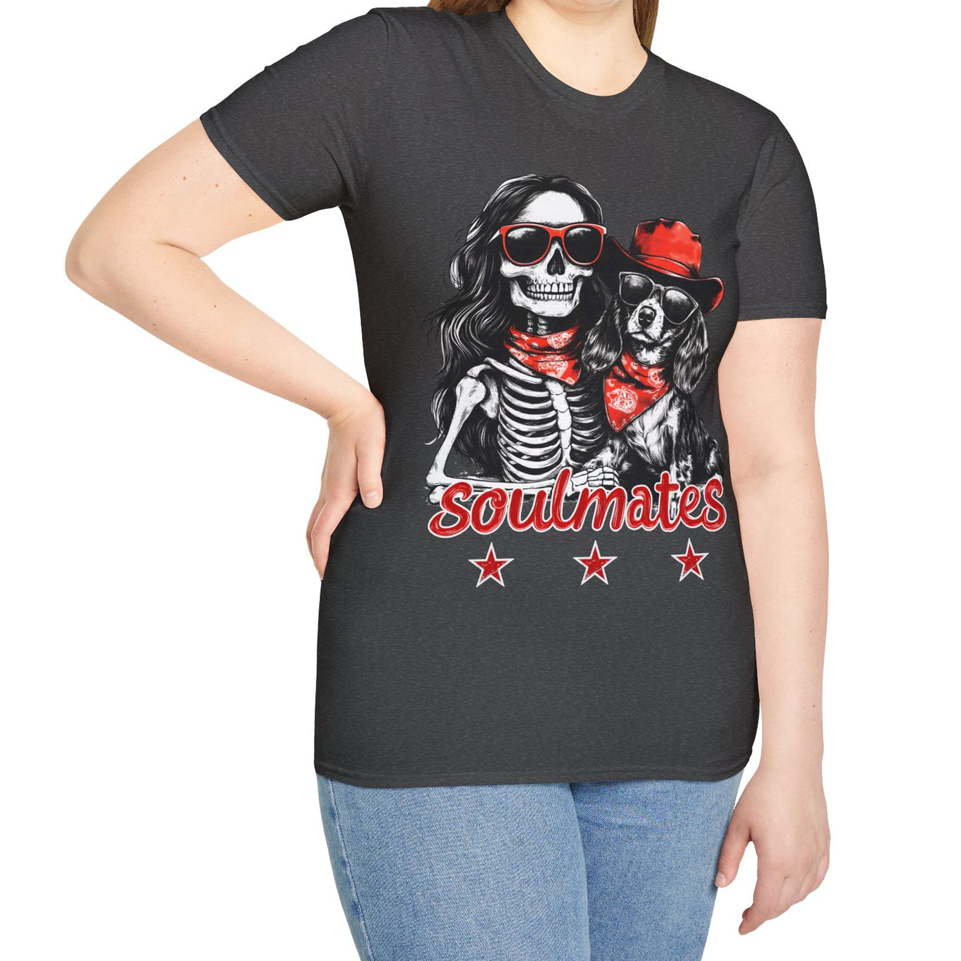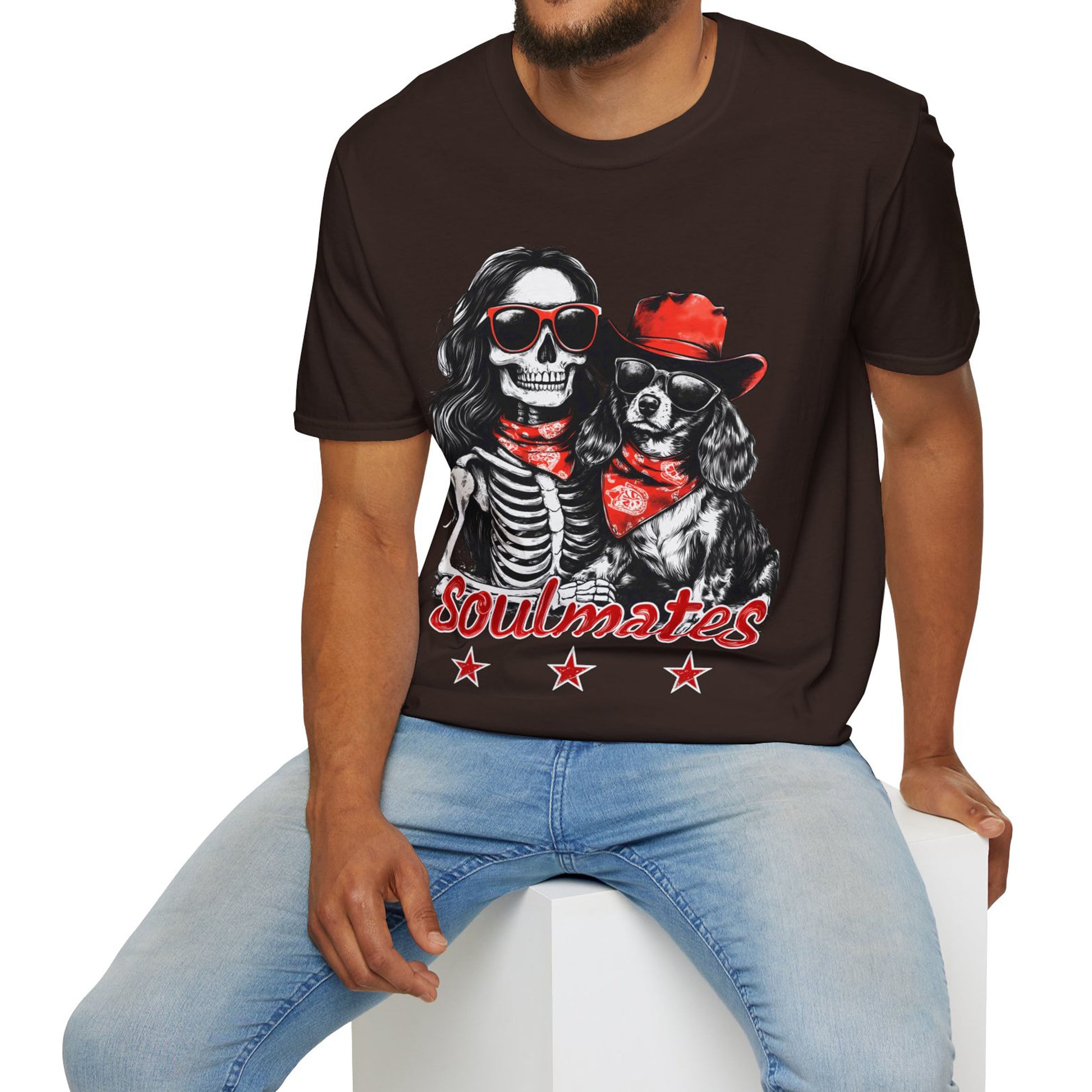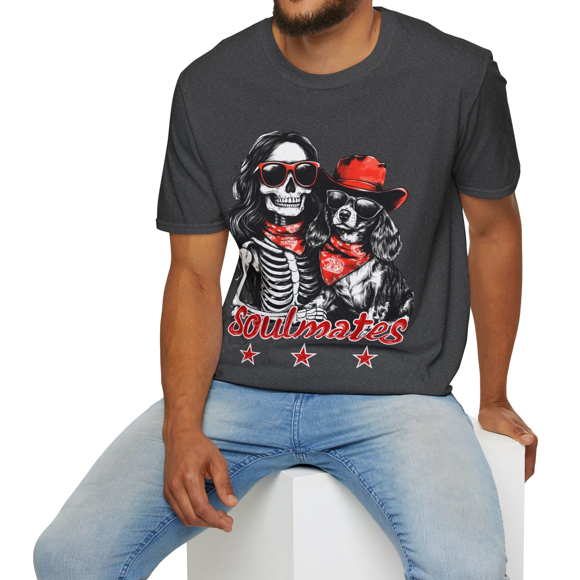 "Long-Time Soulmates" Long-Haired Dachshund Halloween Unisex Softstyle T-Shirt