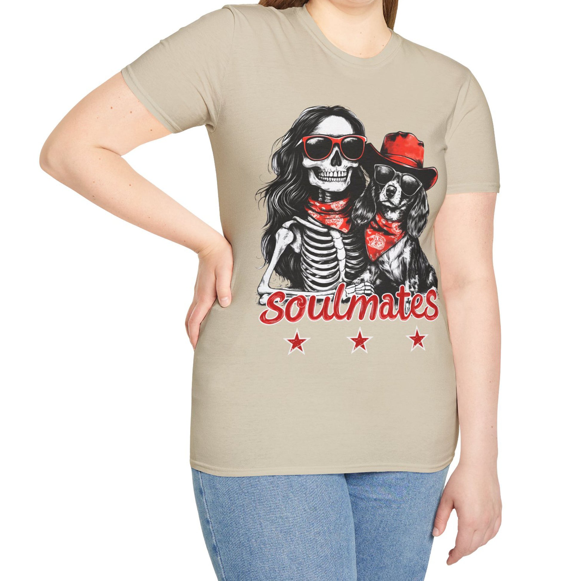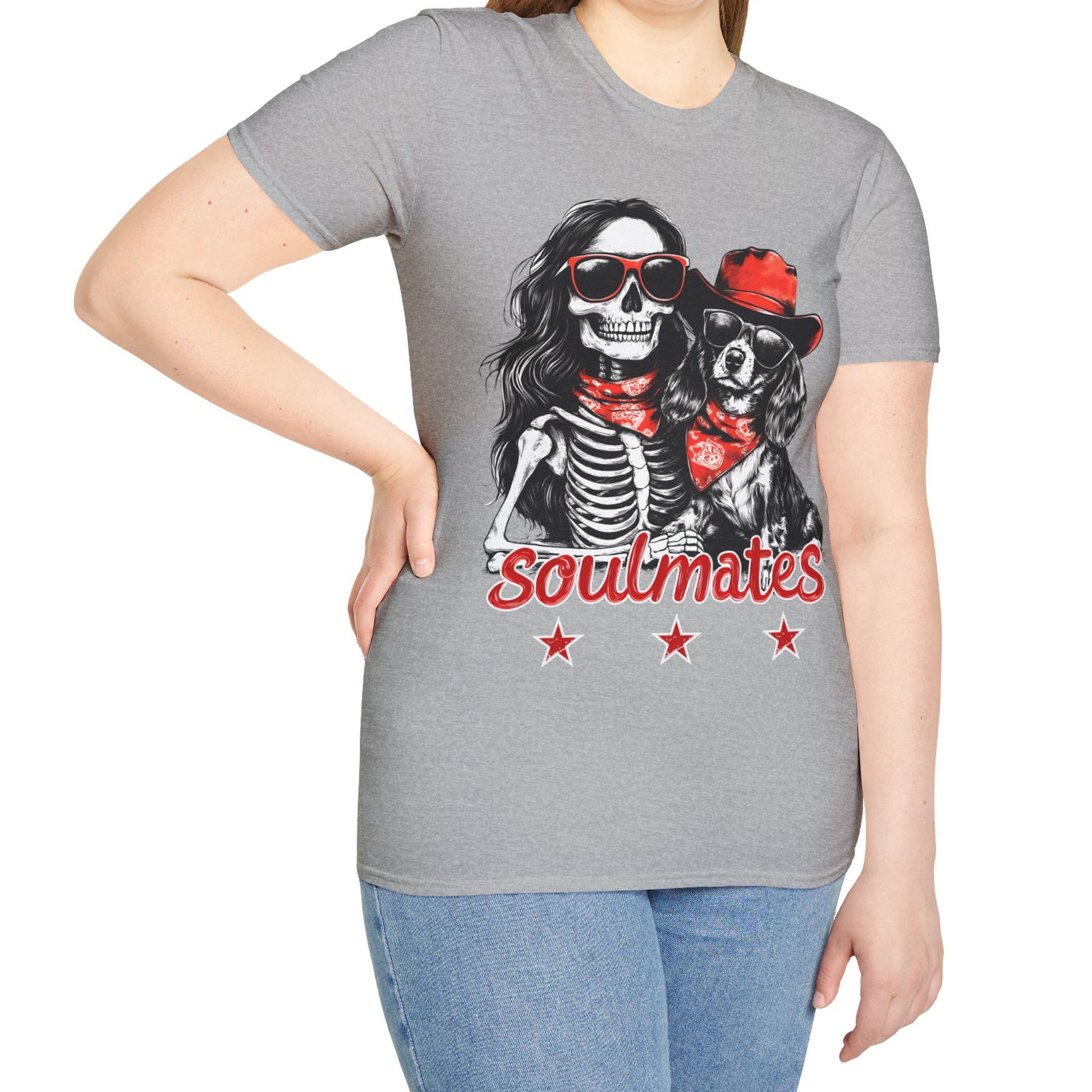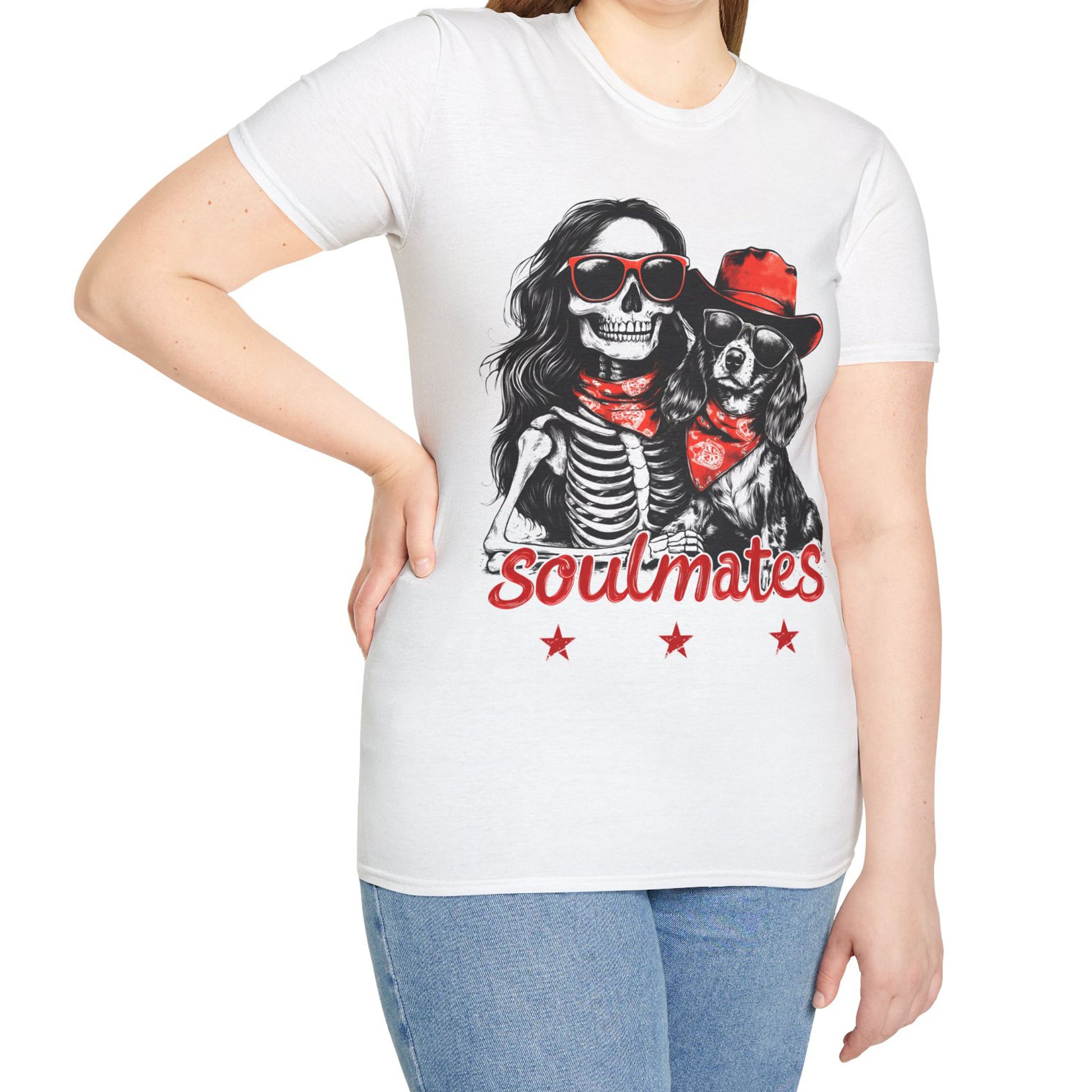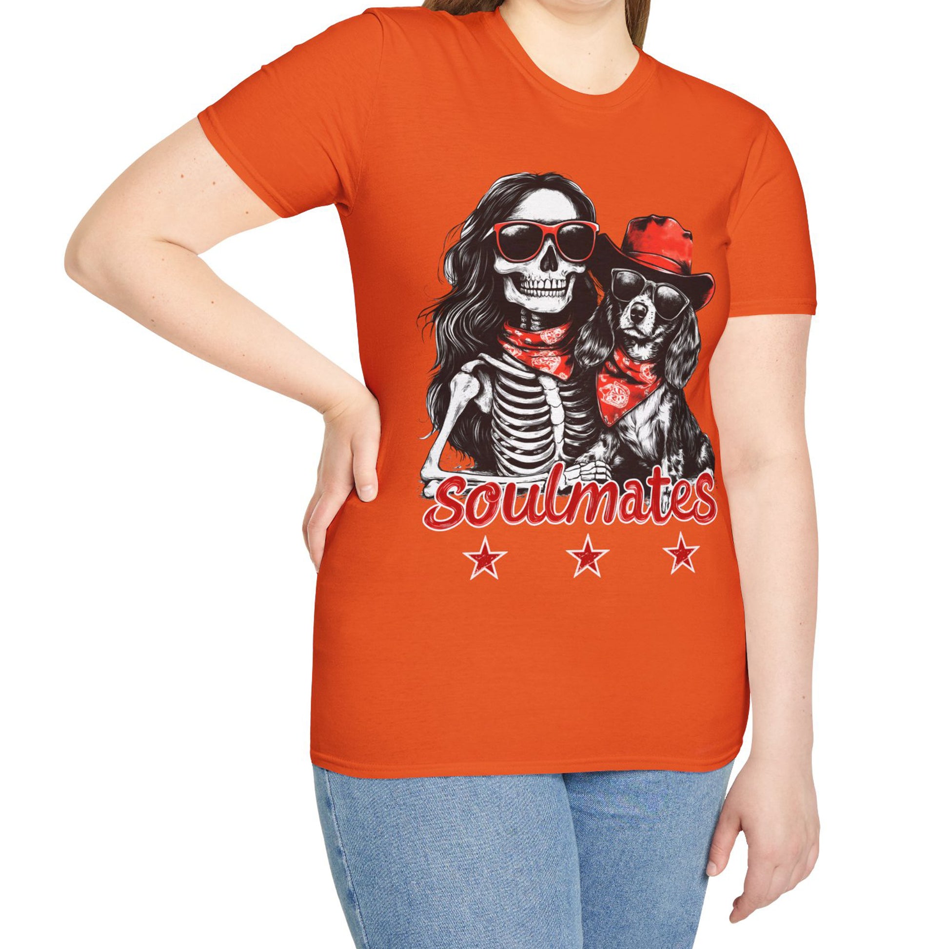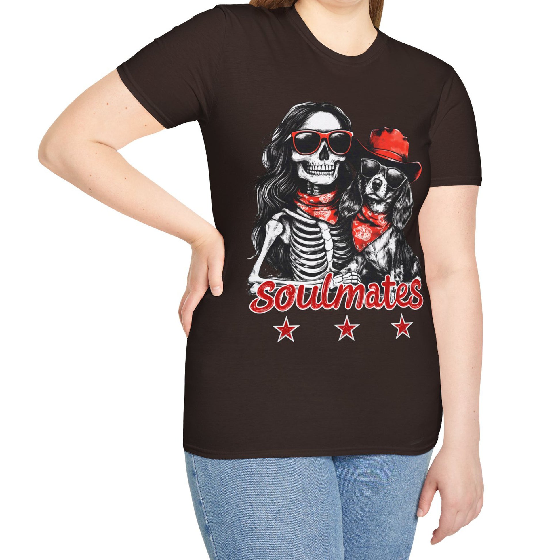 "Long-Time Soulmates" Long-Haired Dachshund Halloween Unisex Softstyle T-Shirt
