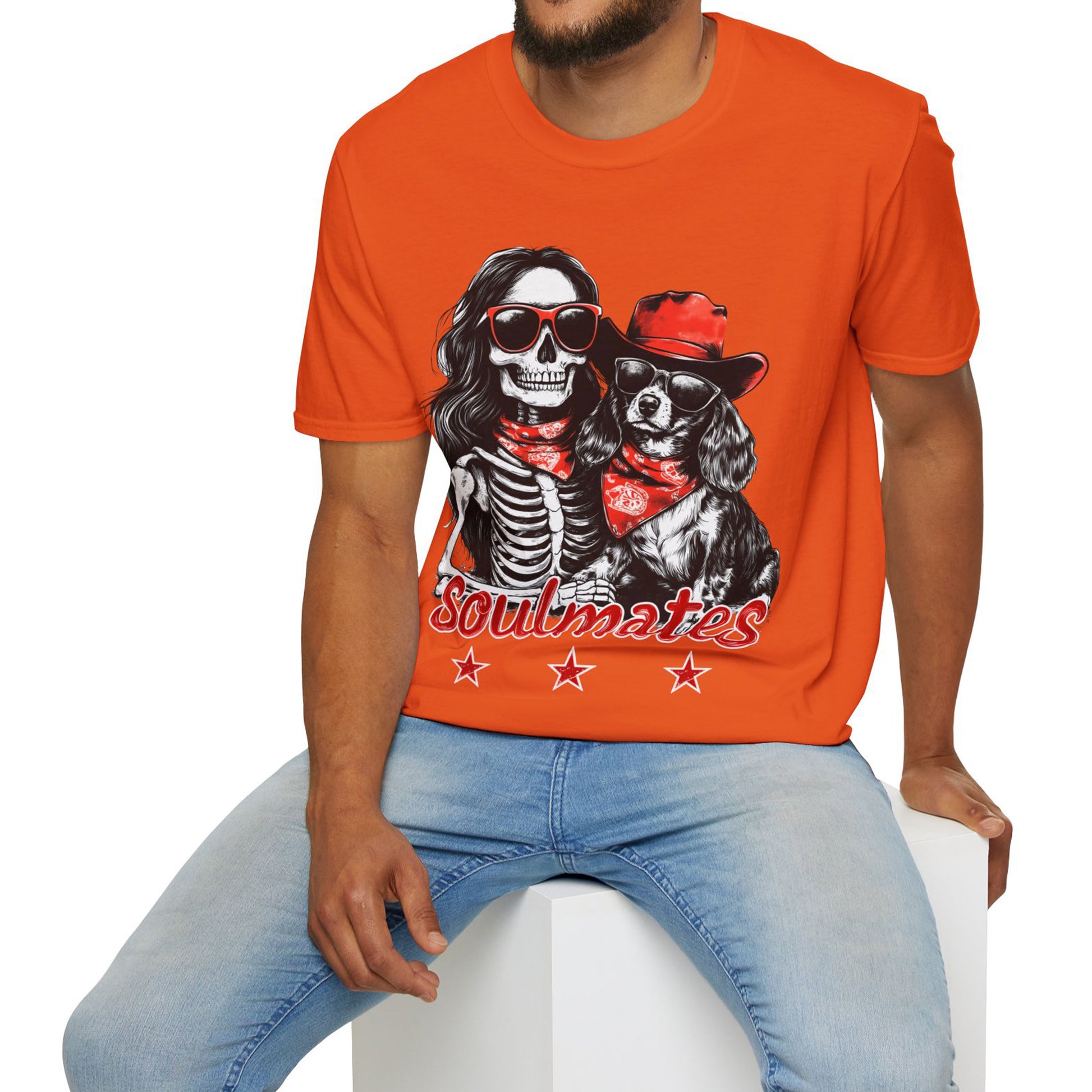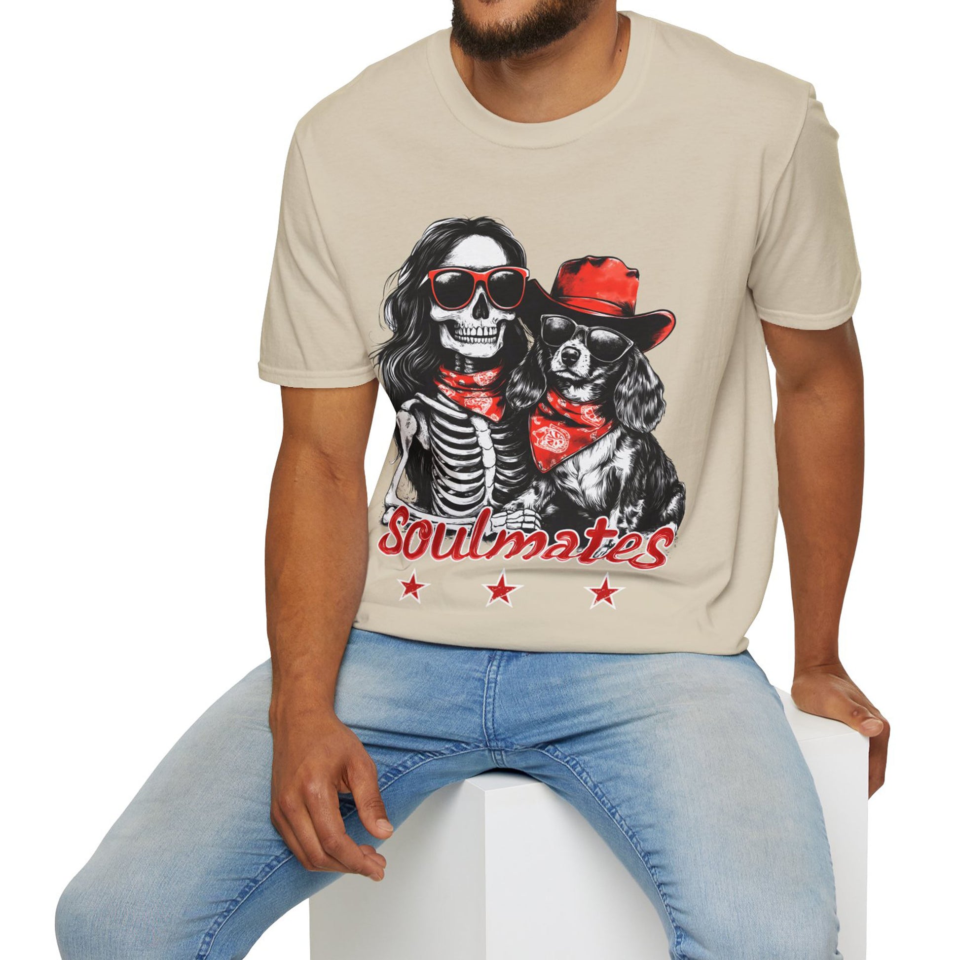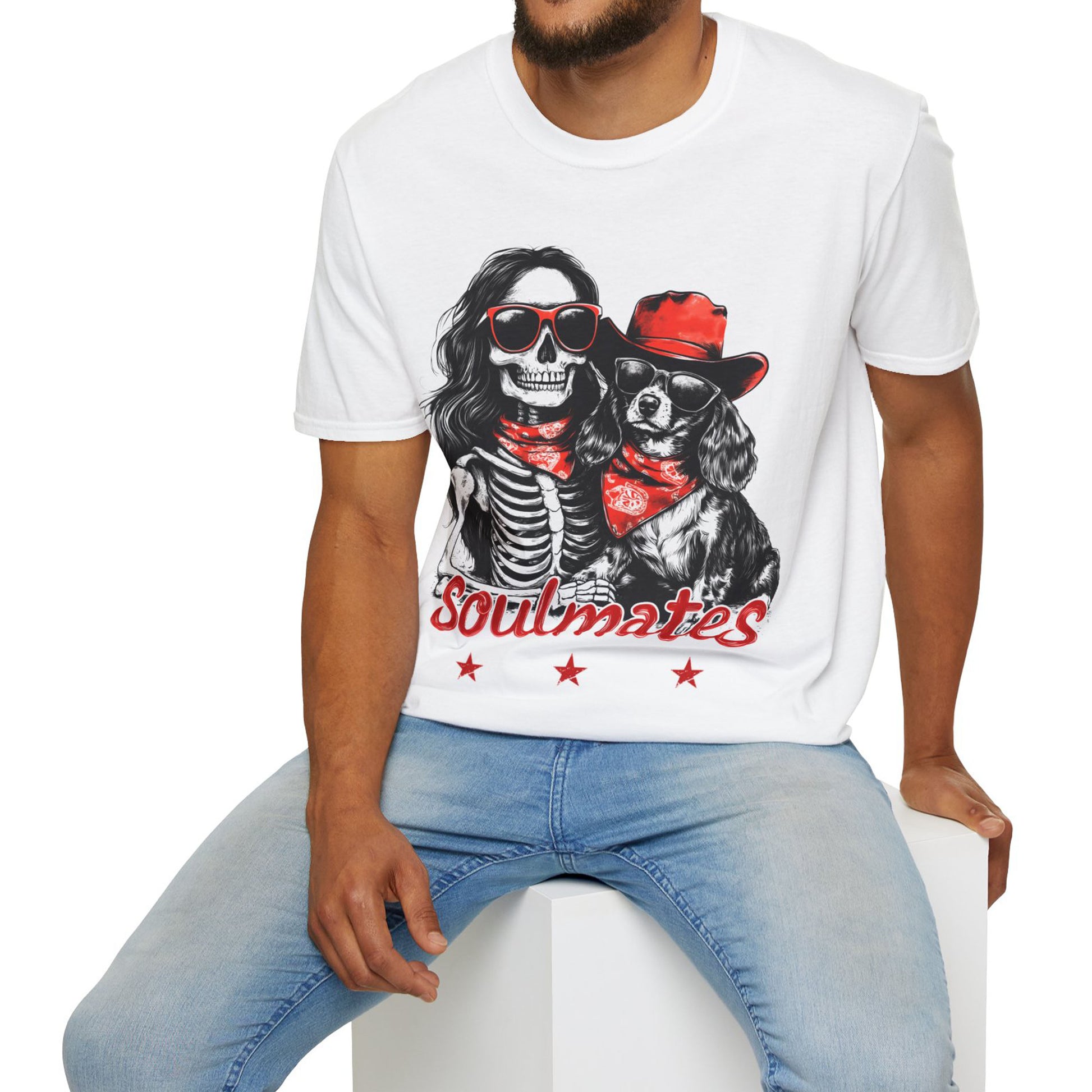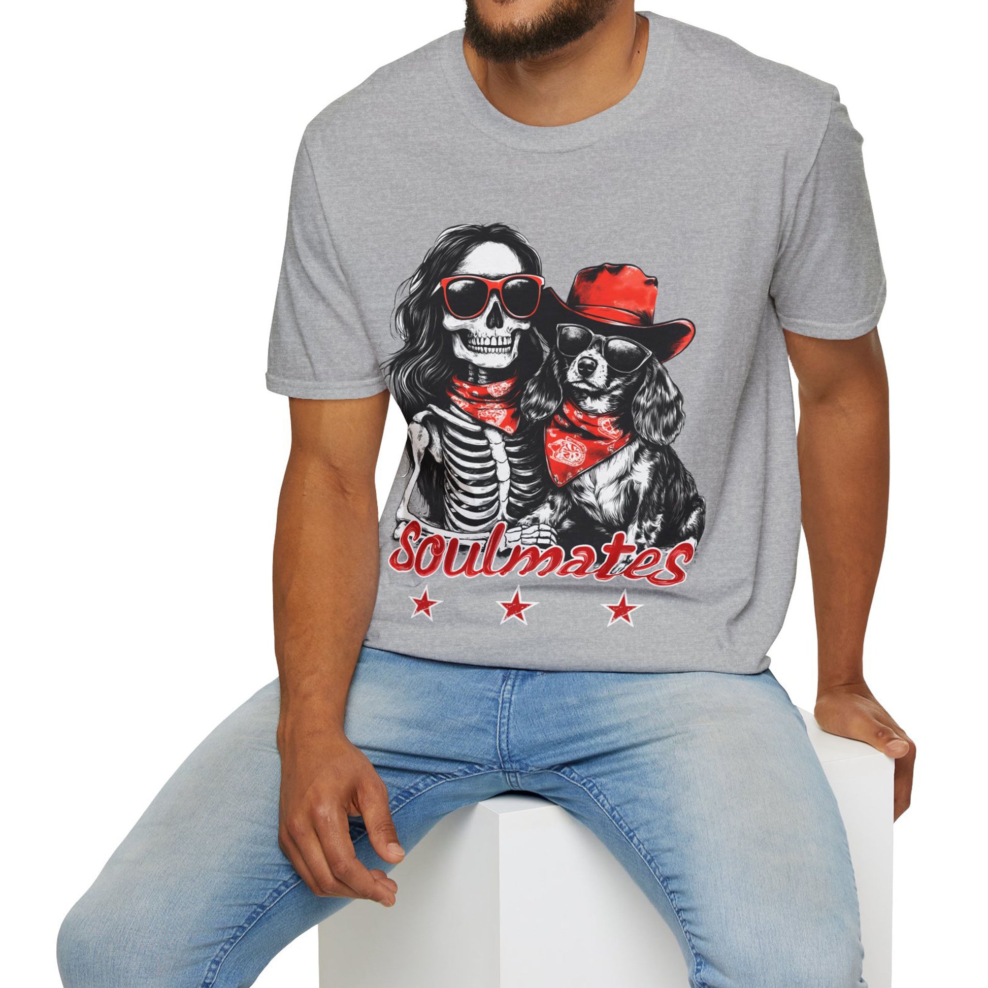 "Long-Time Soulmates" Long-Haired Dachshund Halloween Unisex Softstyle T-Shirt