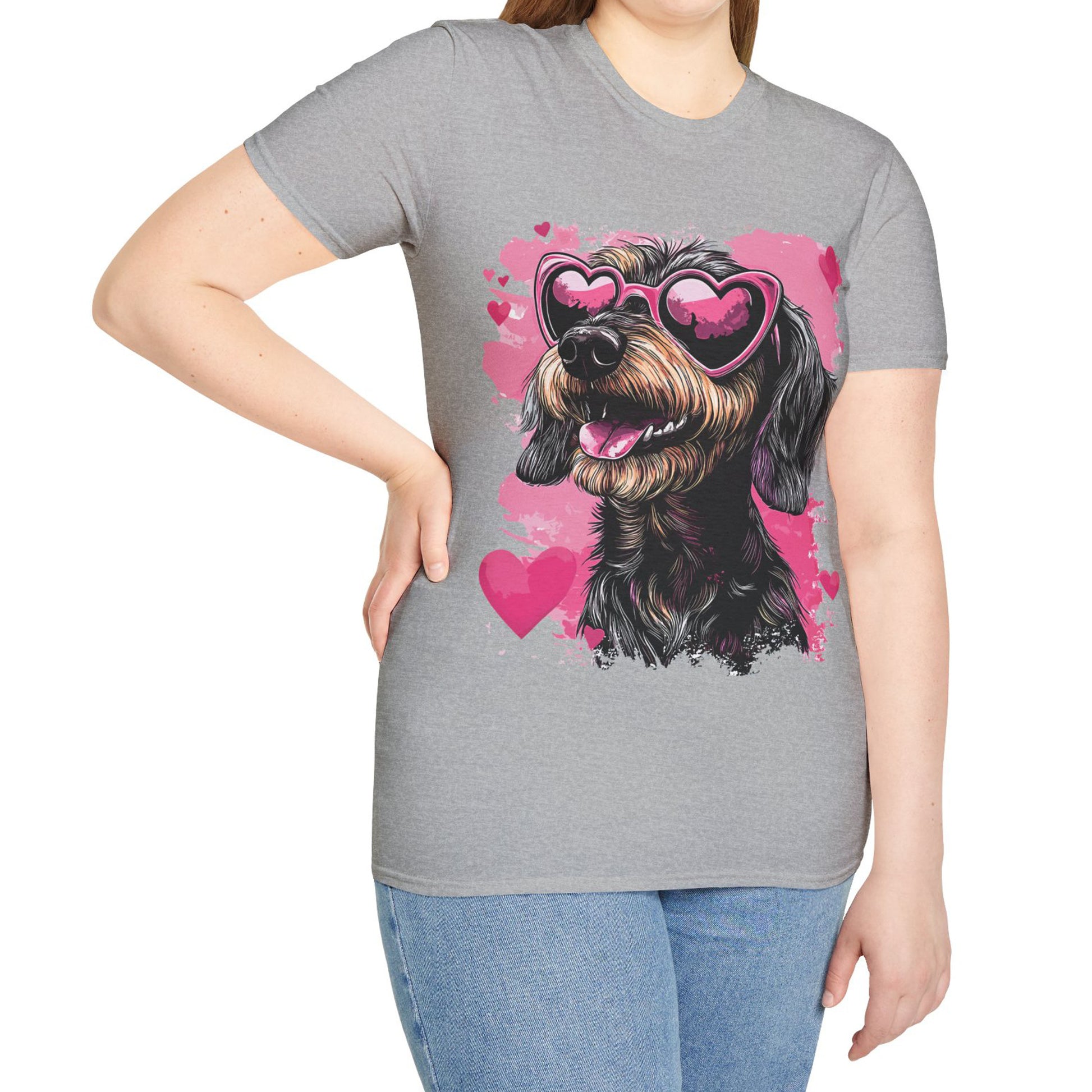 "Wired Heart" Wire-Haired Dachshund Unisex Softstyle T-Shirt
