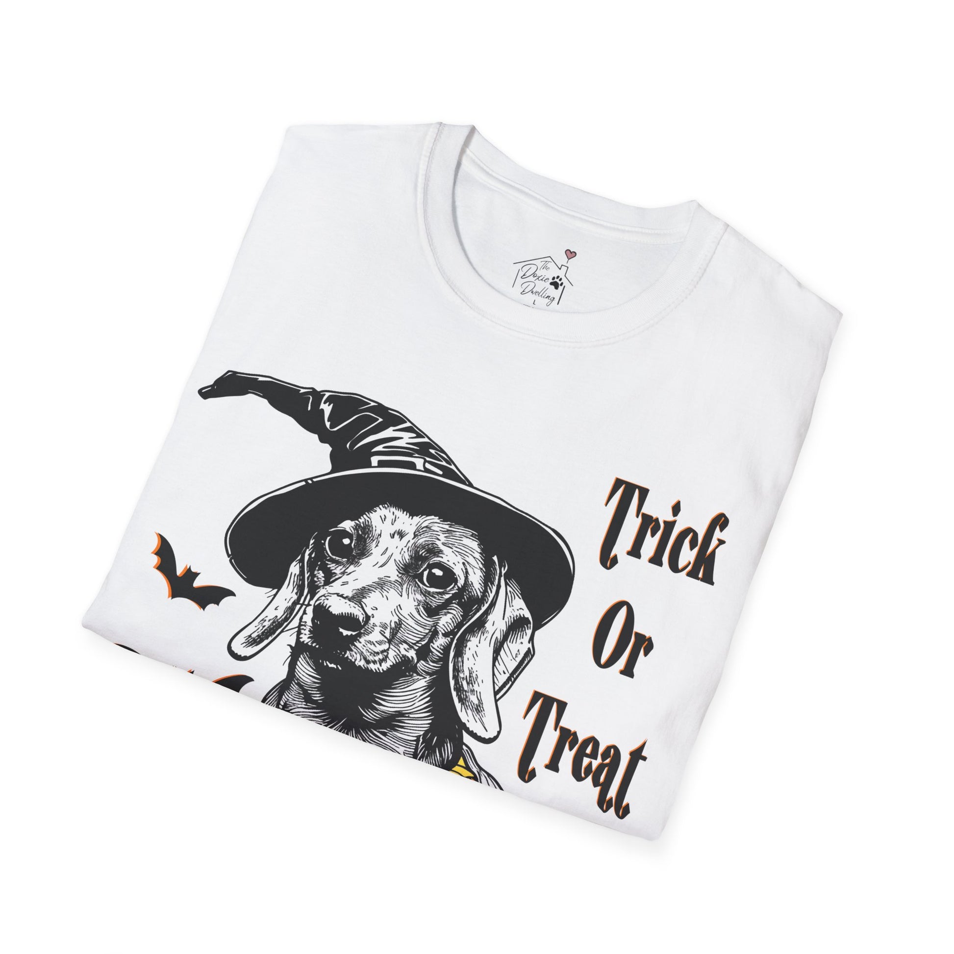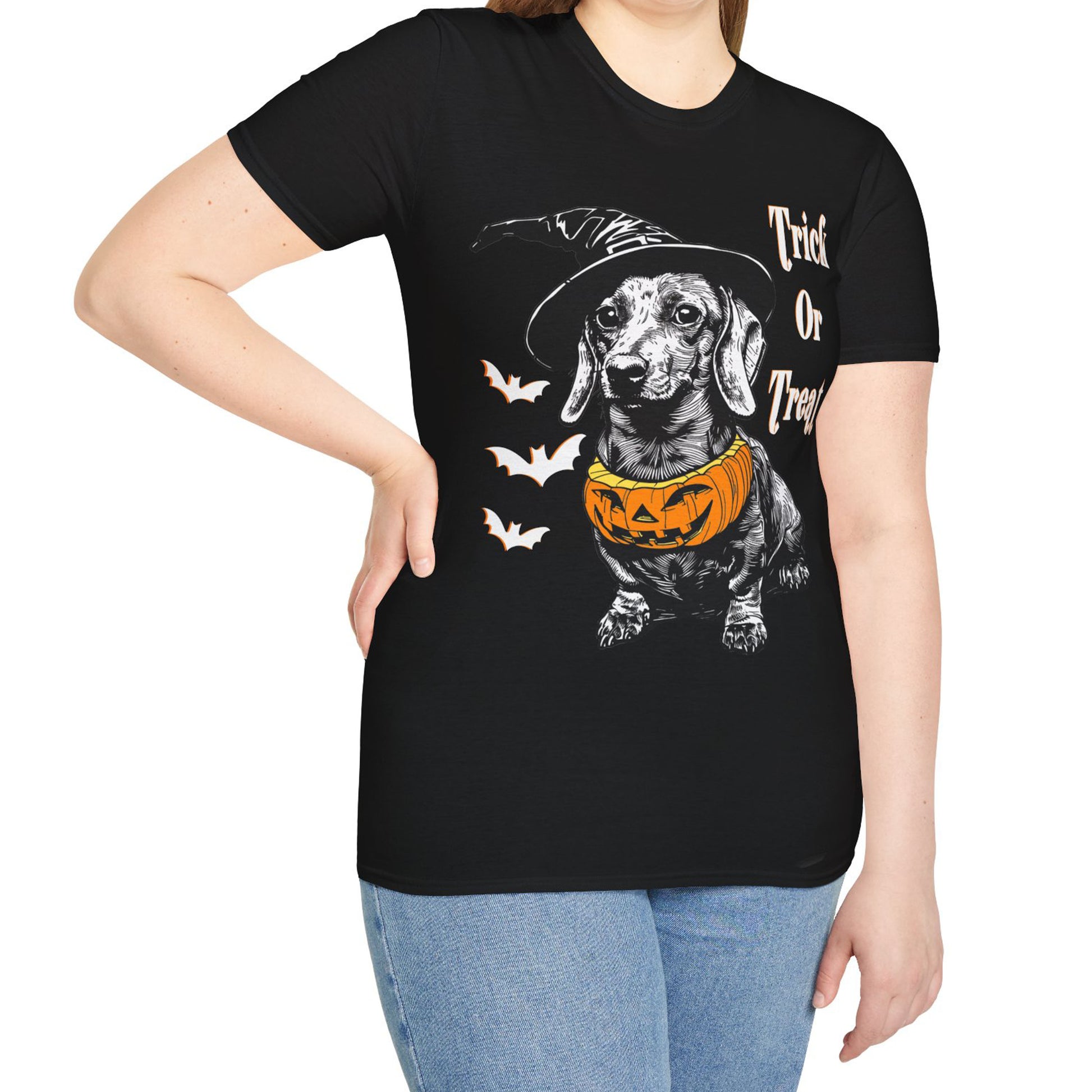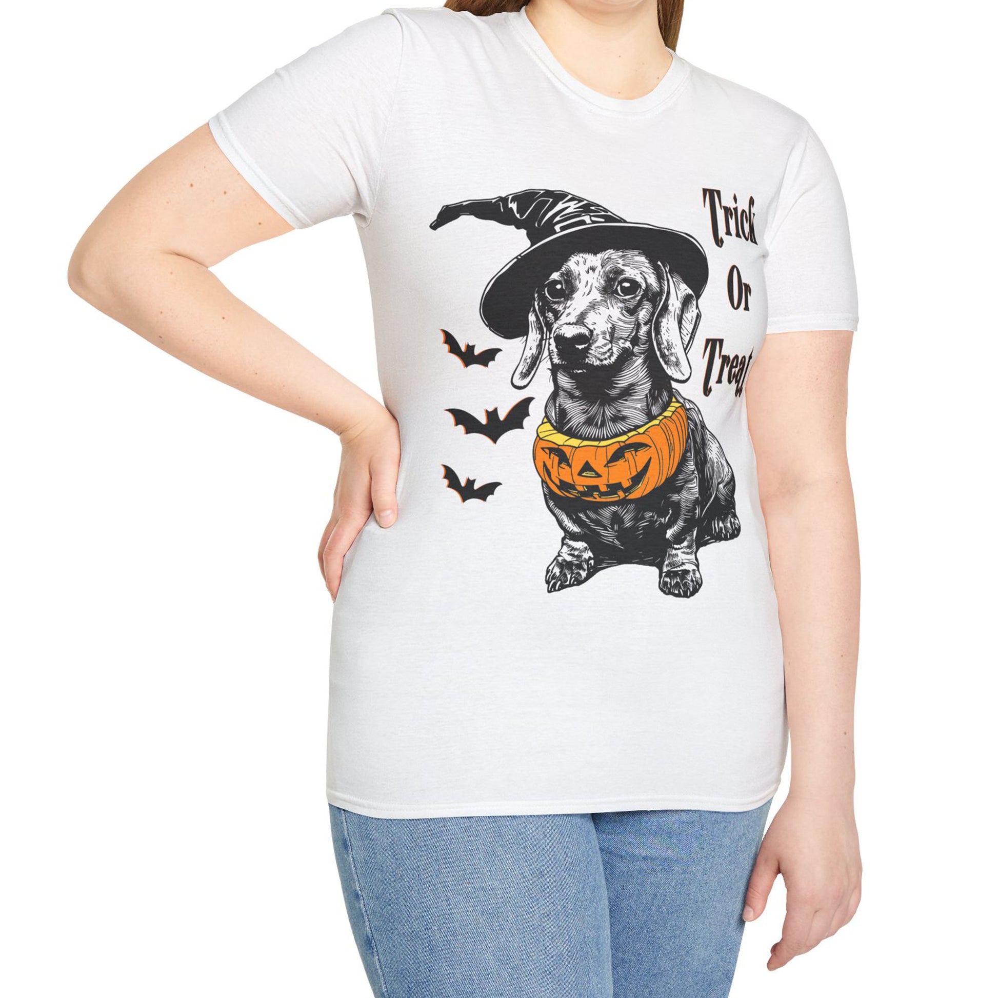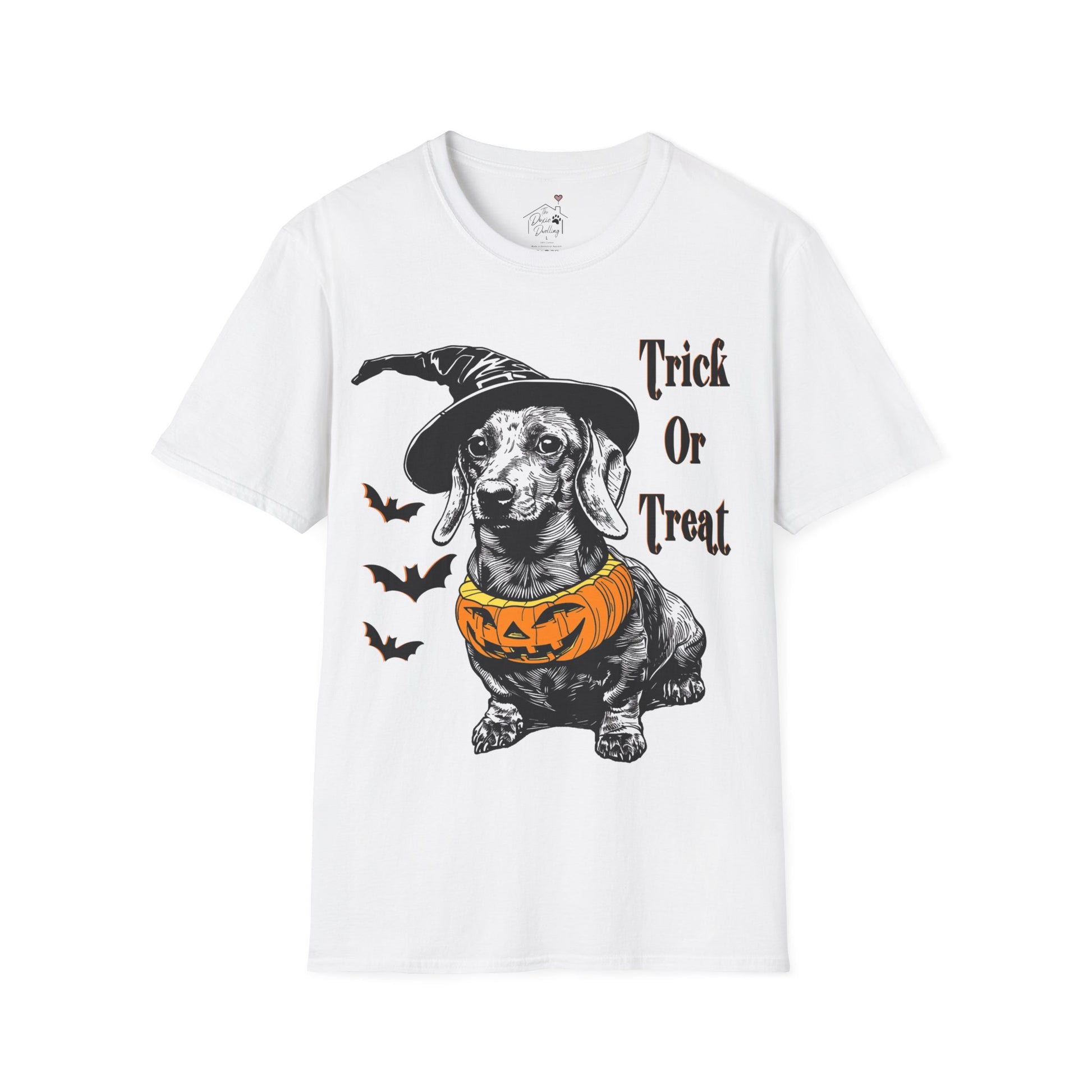 "Trick Or Treat" Smooth-Haired Dachshund Halloween Unisex Softstyle T-Shirt