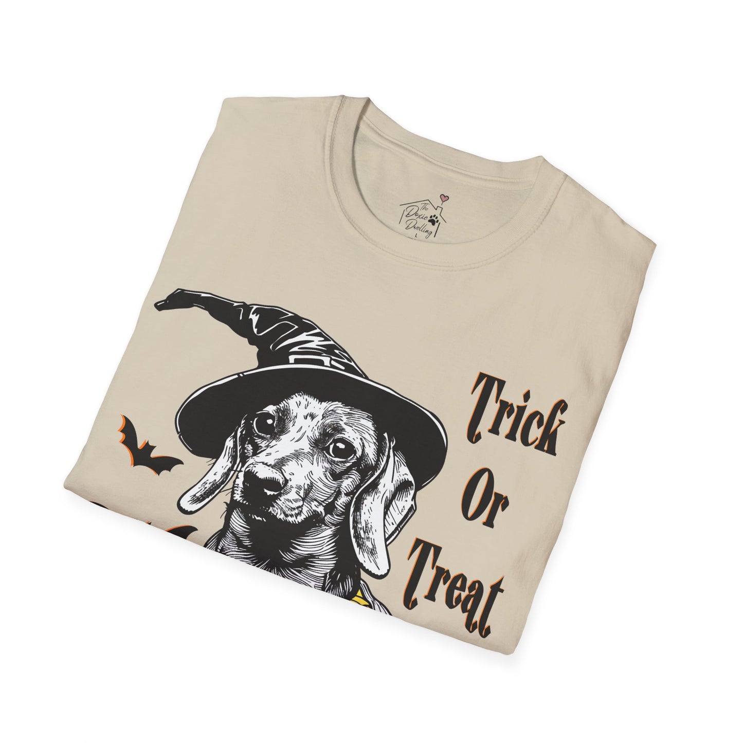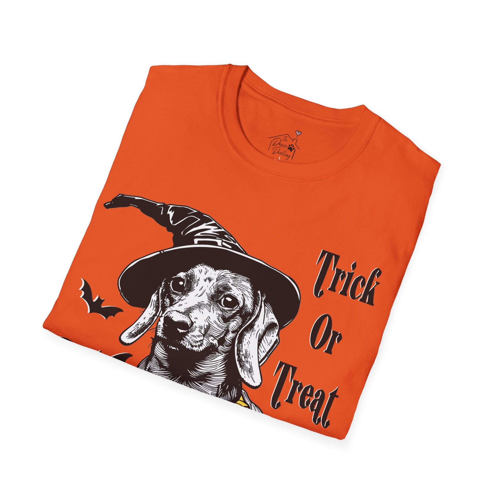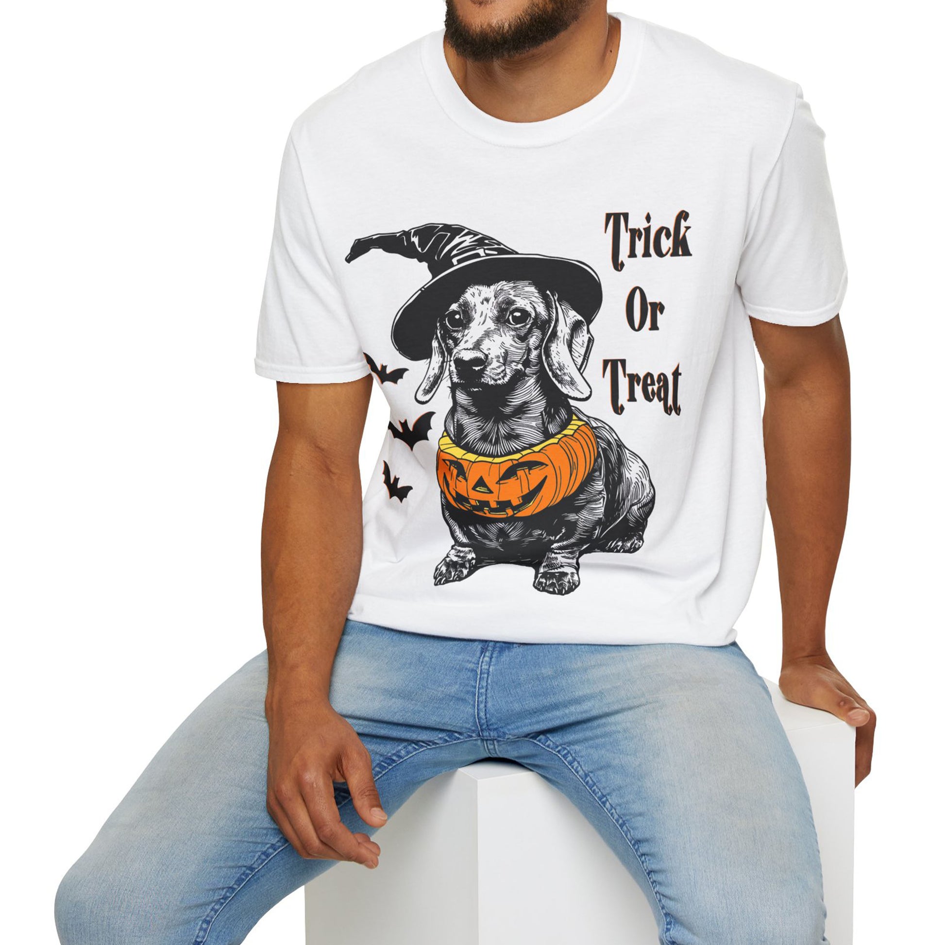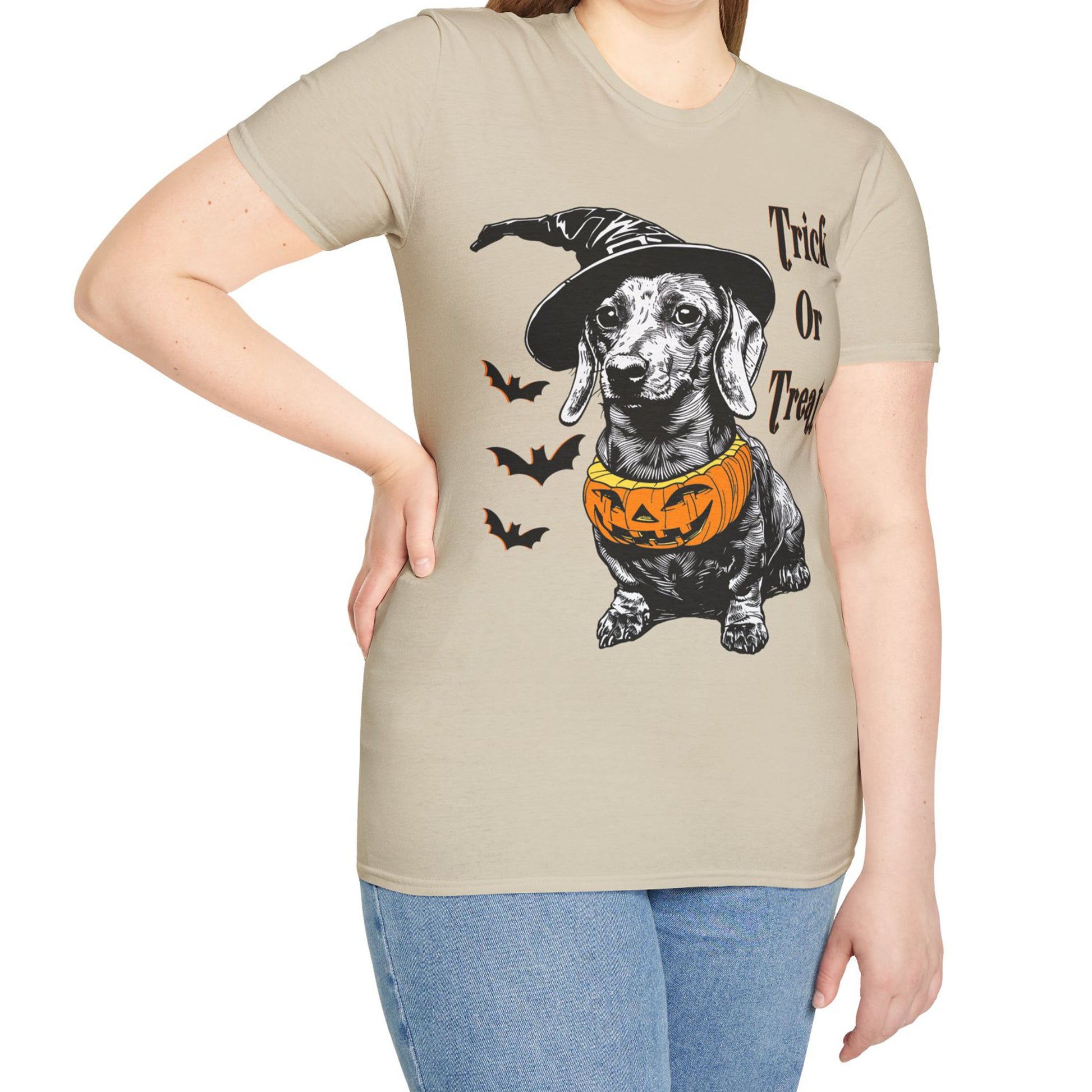 "Trick Or Treat" Smooth-Haired Dachshund Halloween Unisex Softstyle T-Shirt