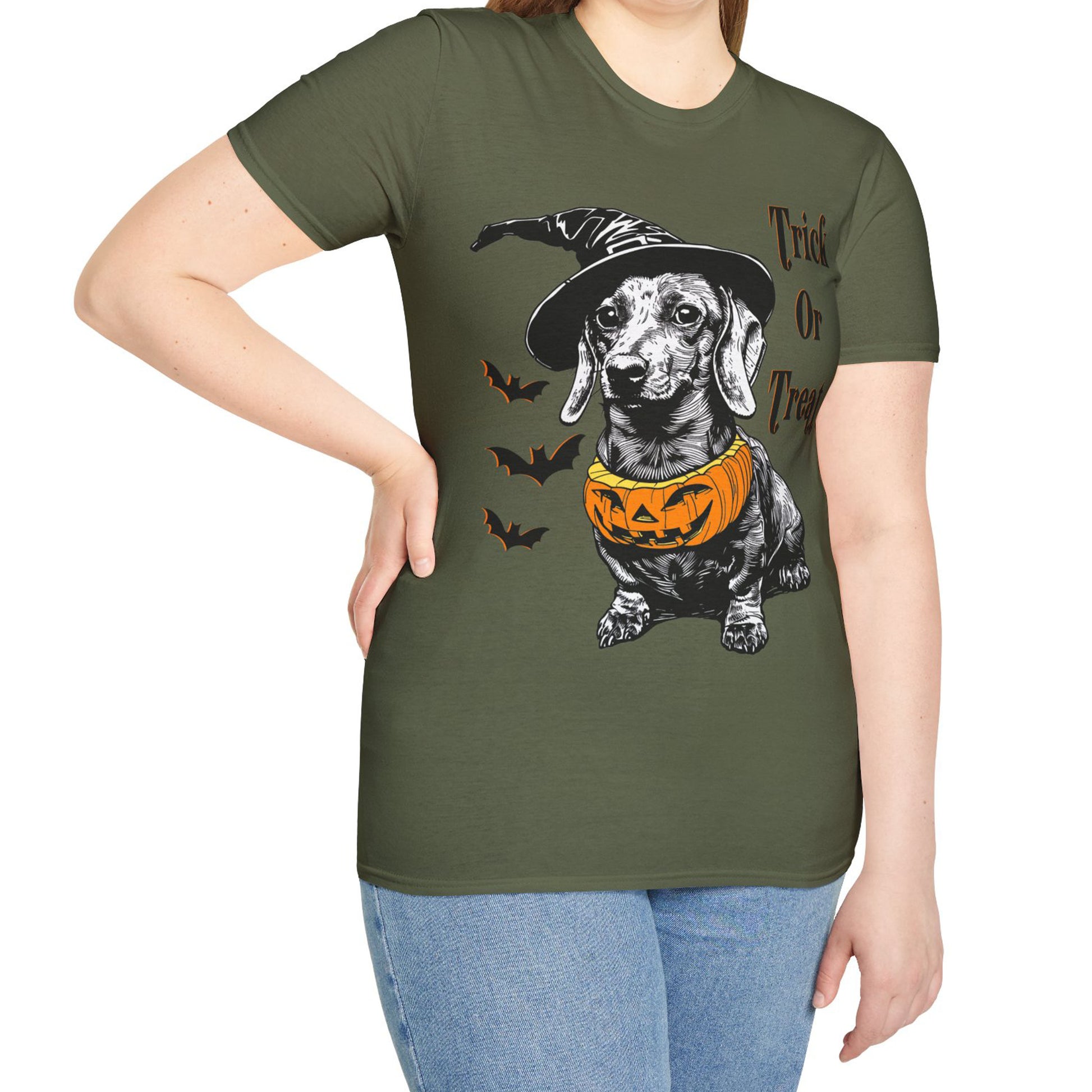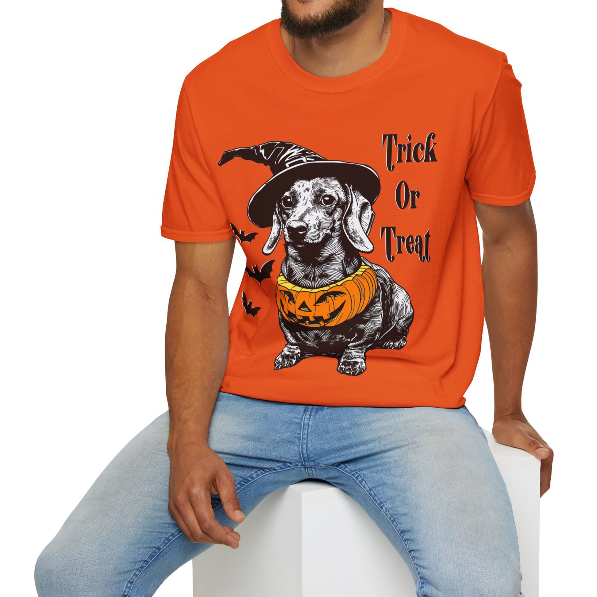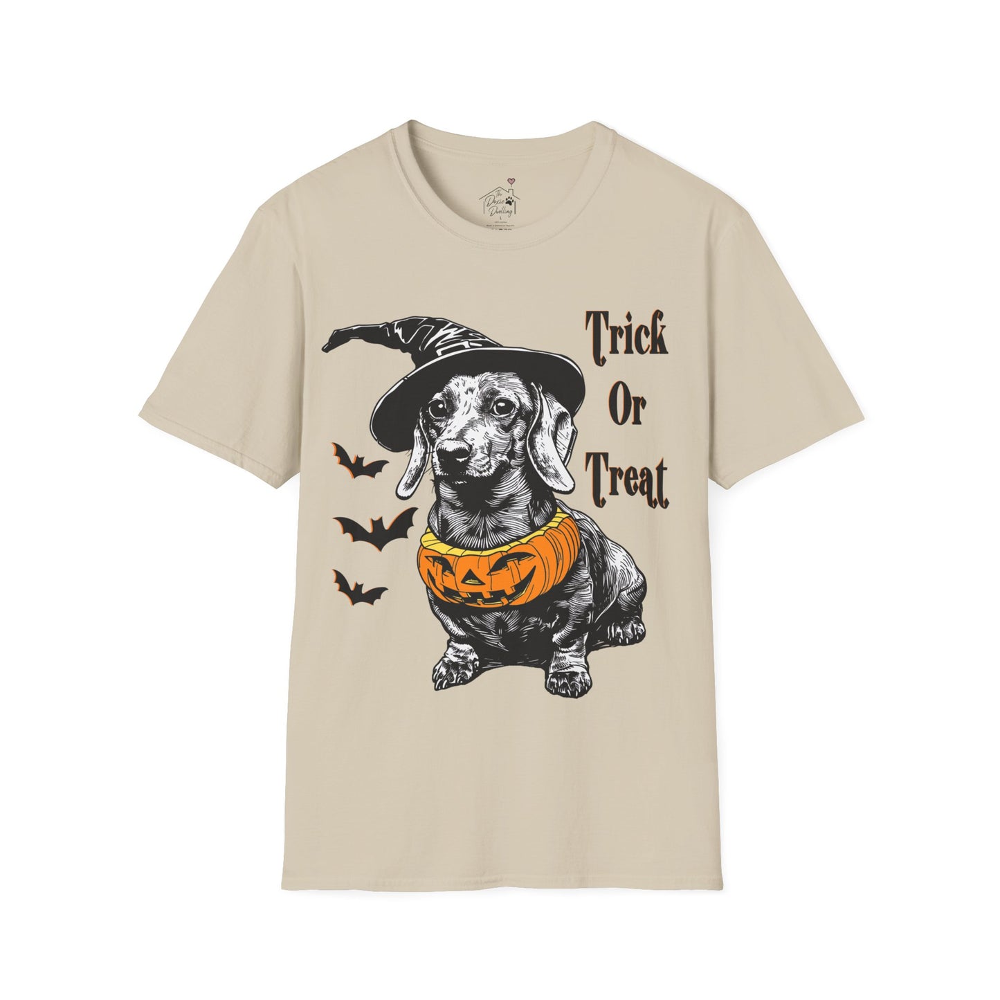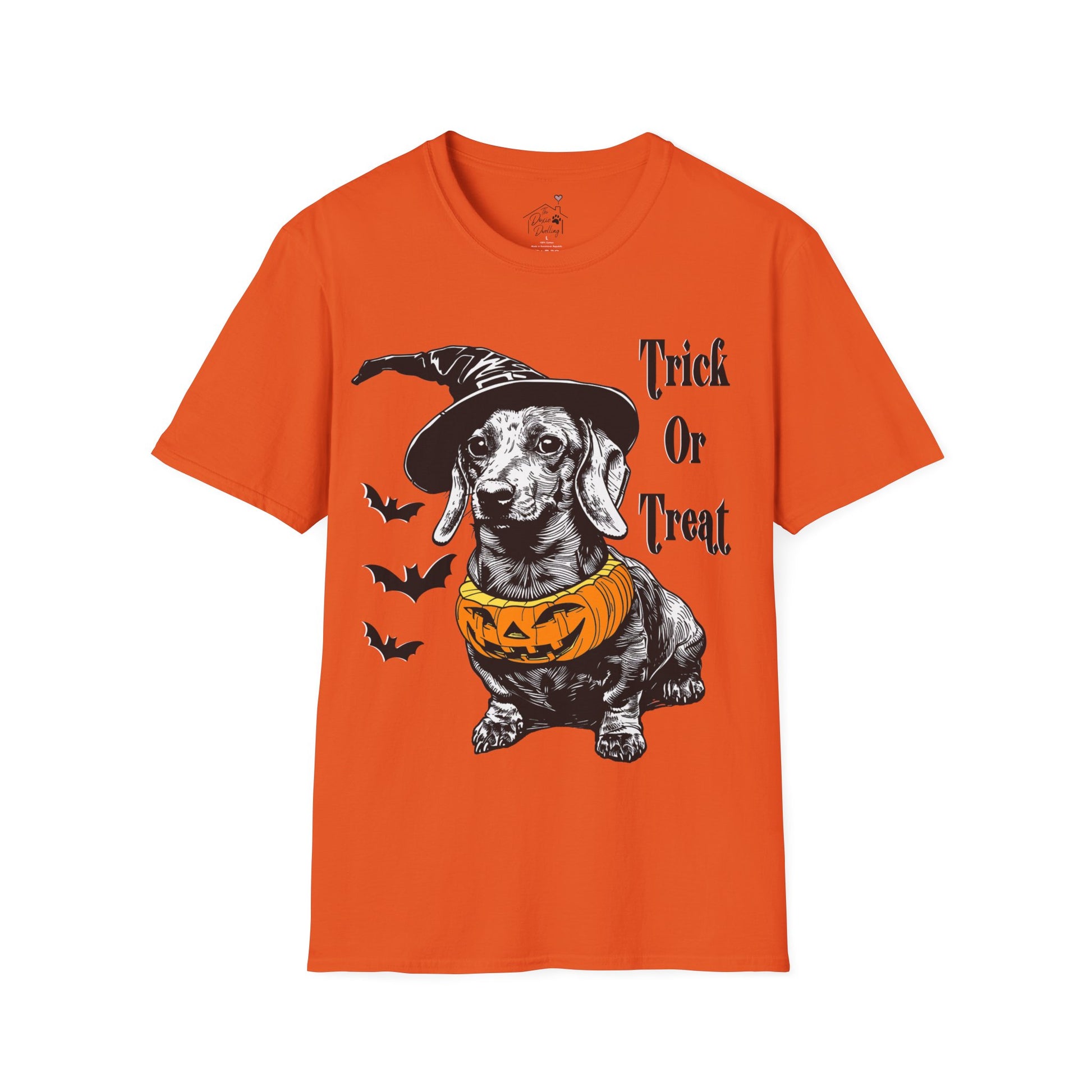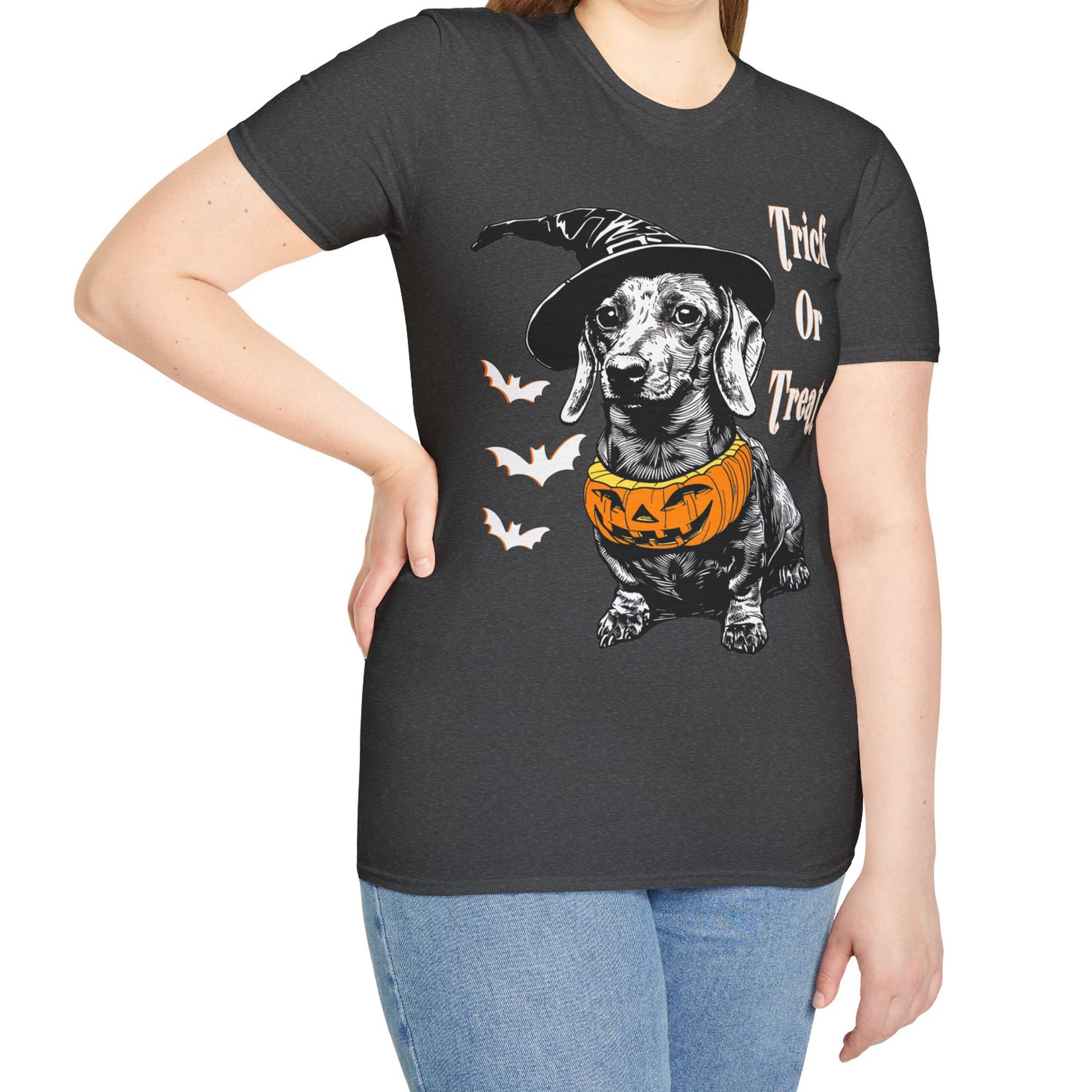 These dachshund Halloween themed Unisex soft-style t-shirts put the “treat” in