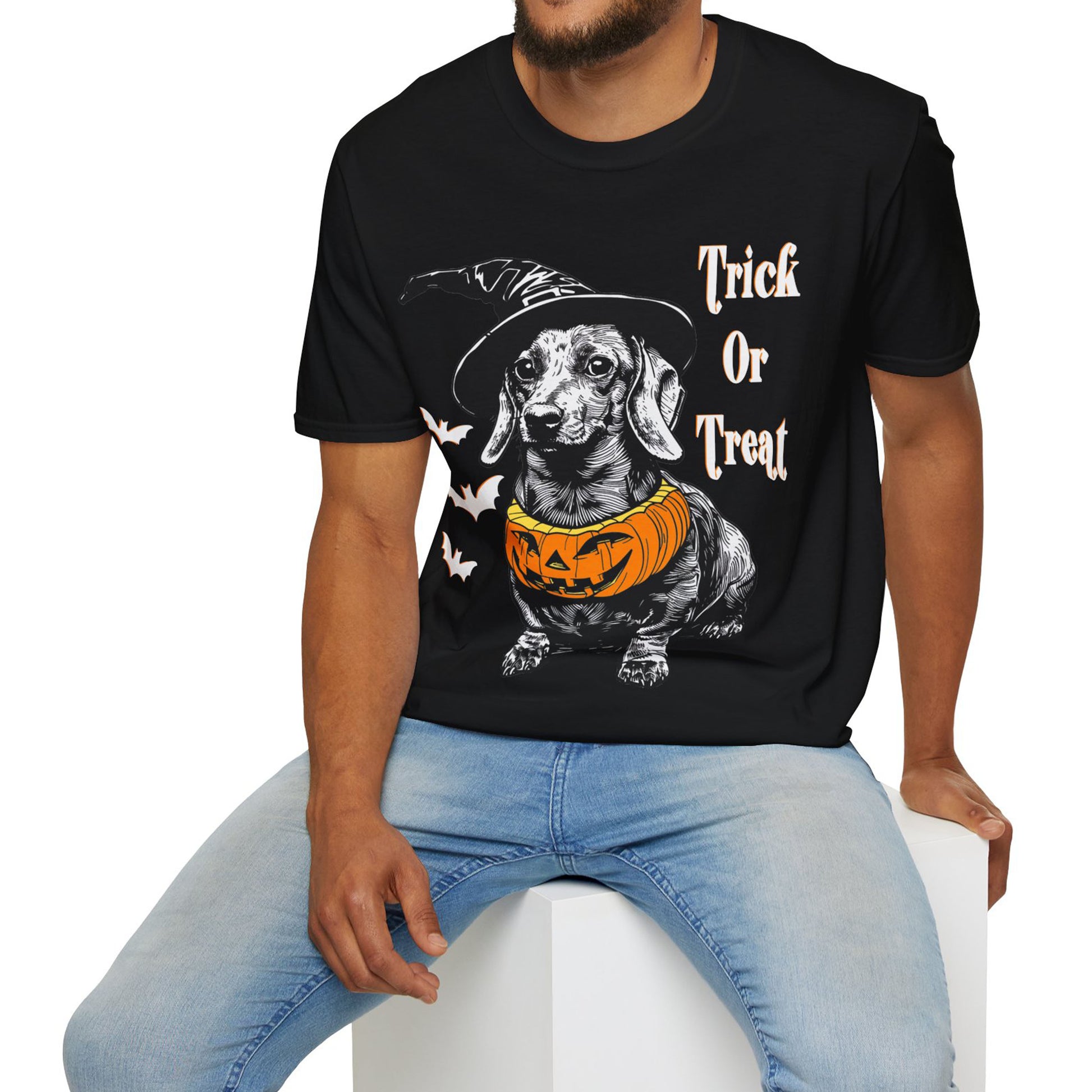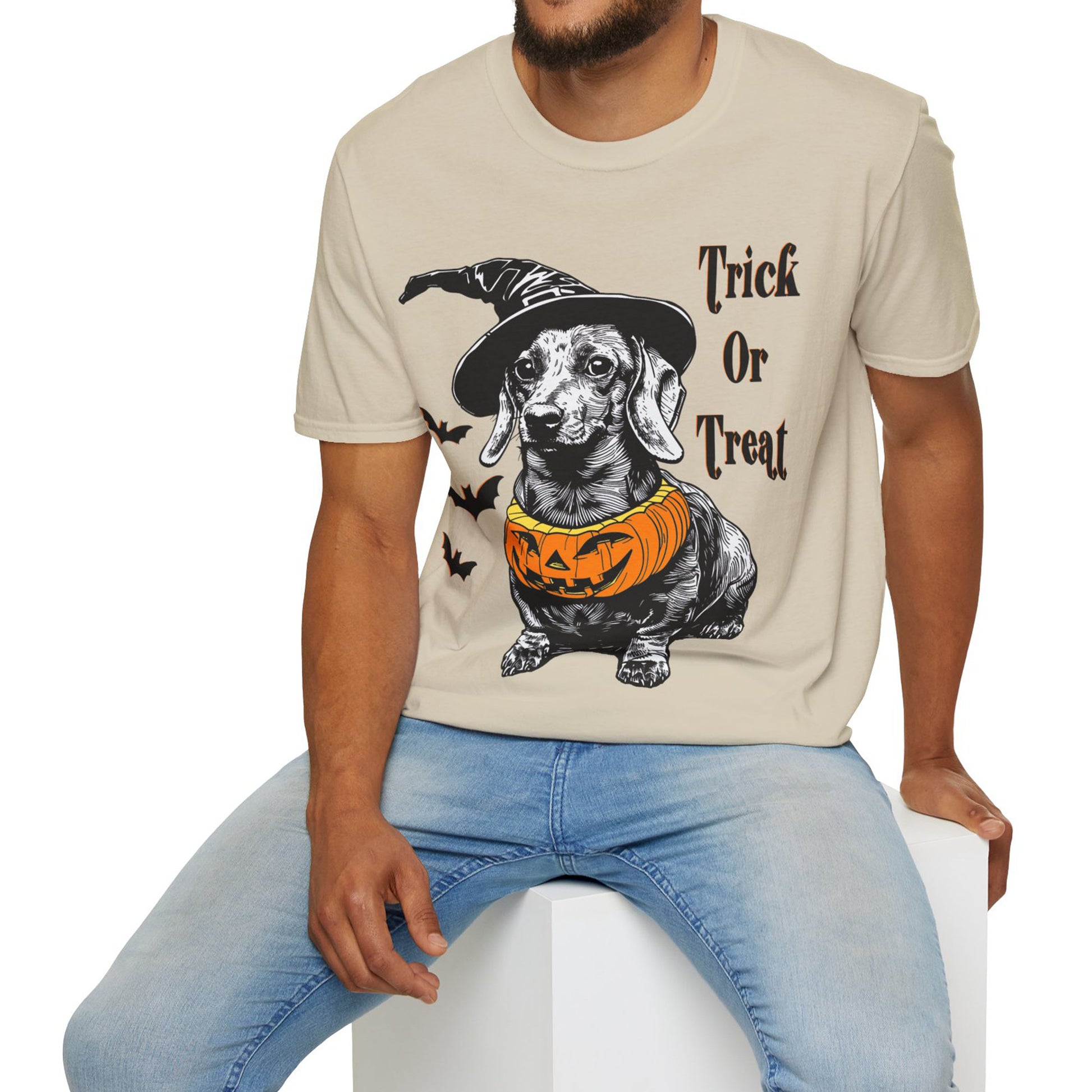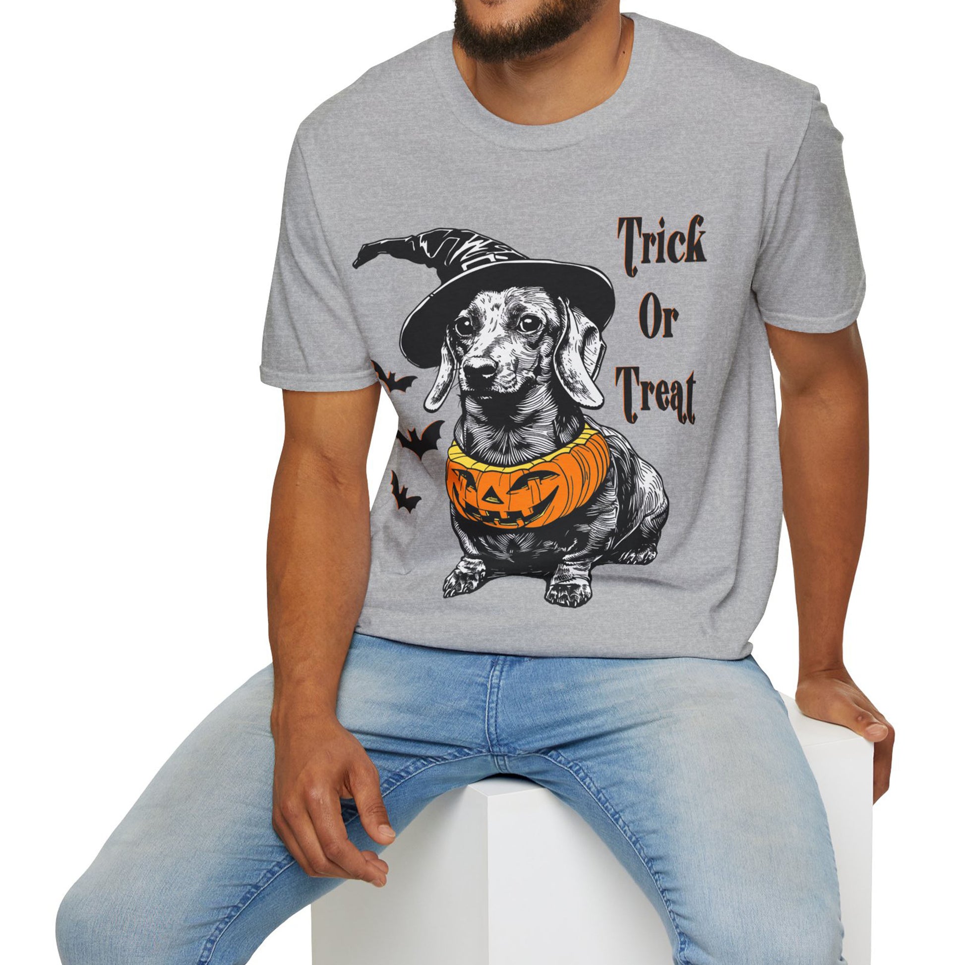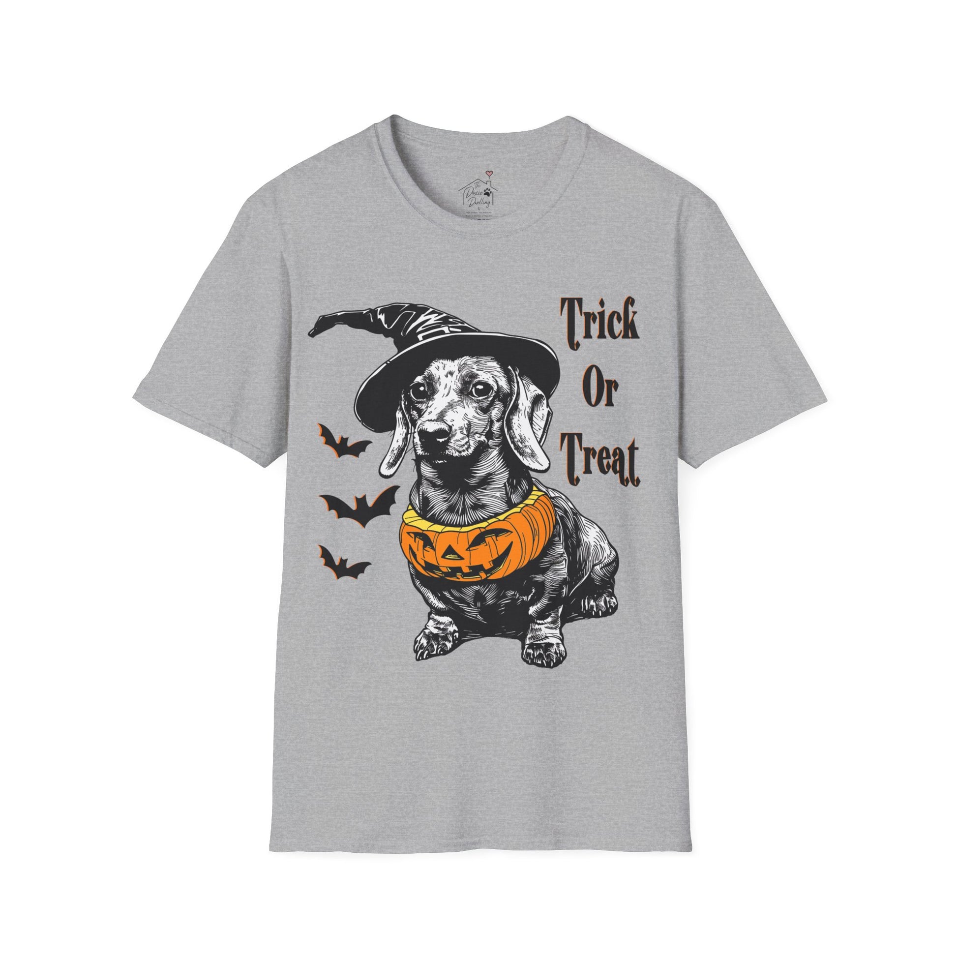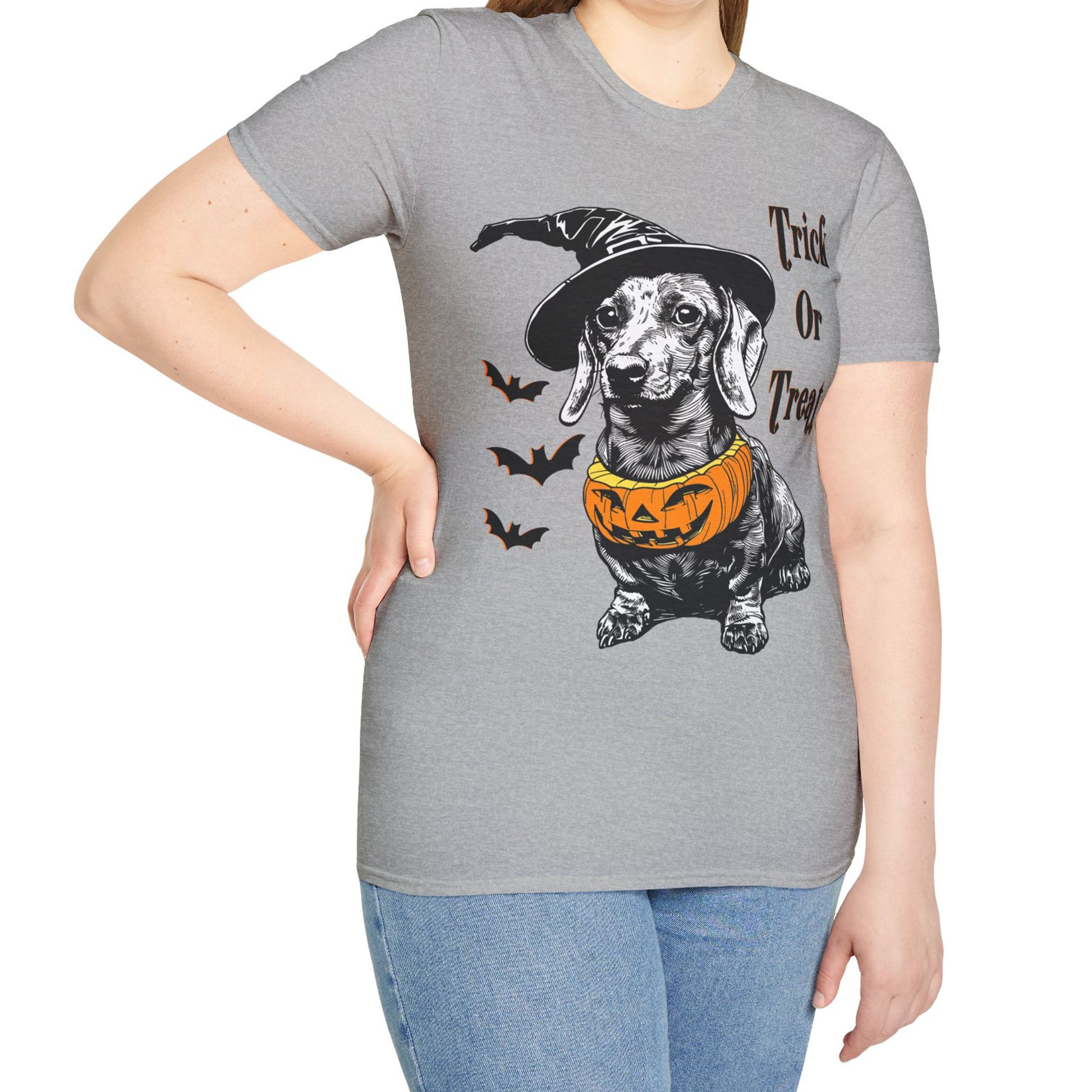 These dachshund Halloween themed Unisex soft-style t-shirts put the “treat” in