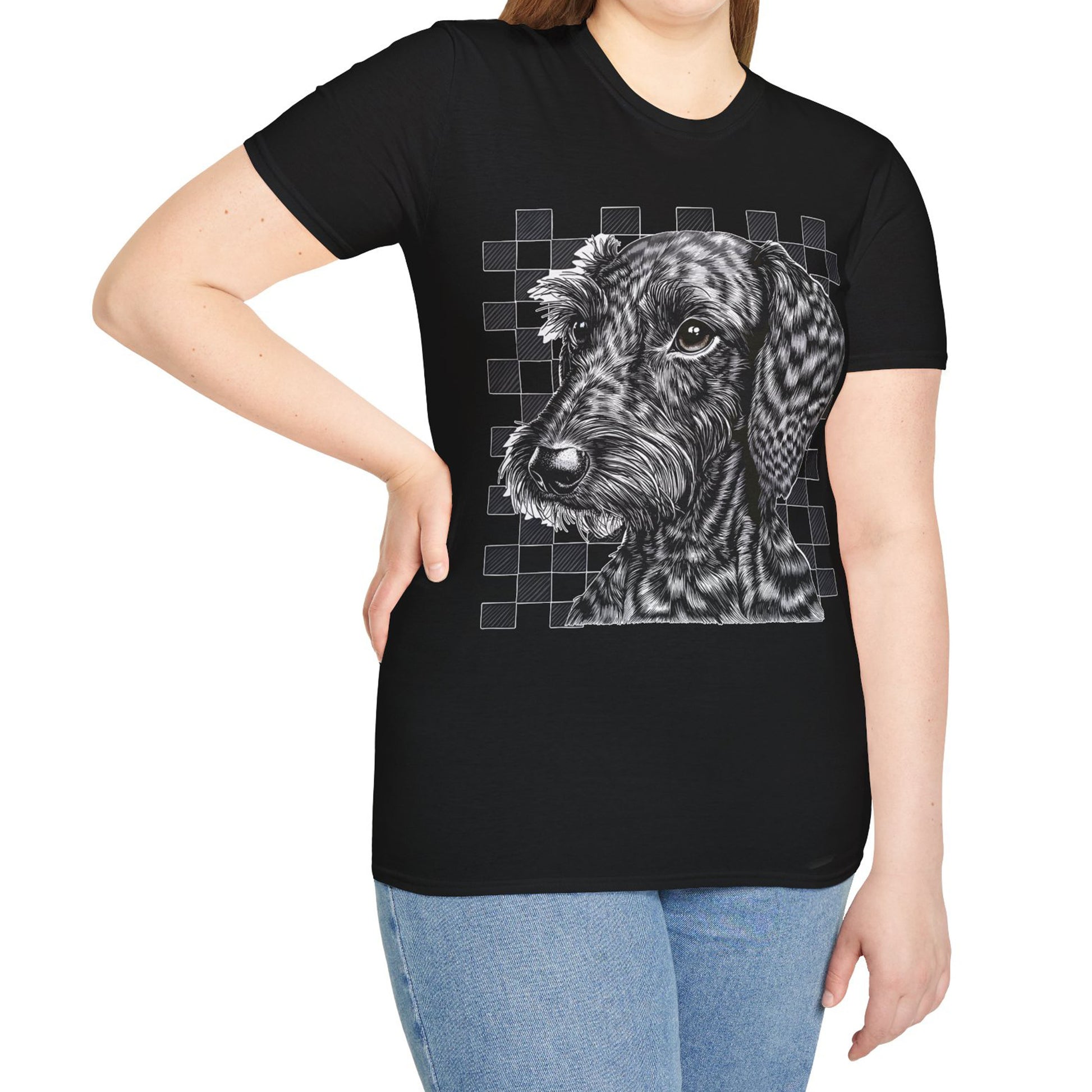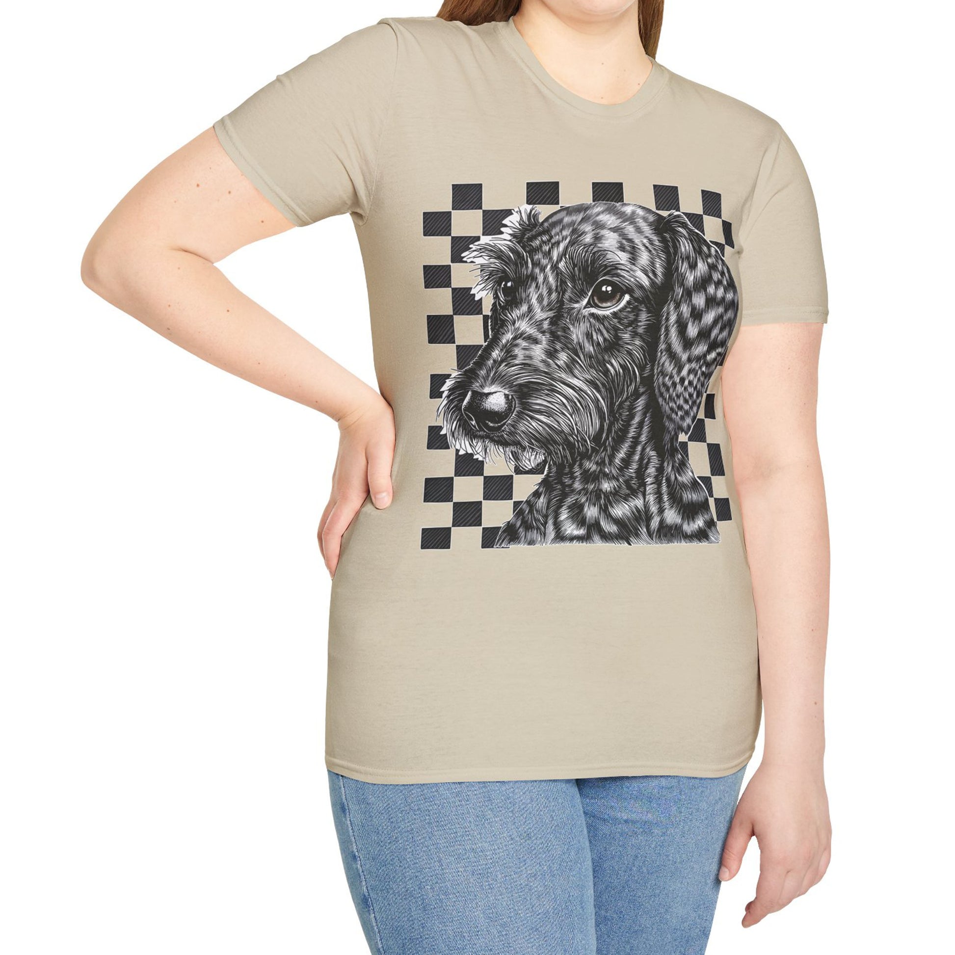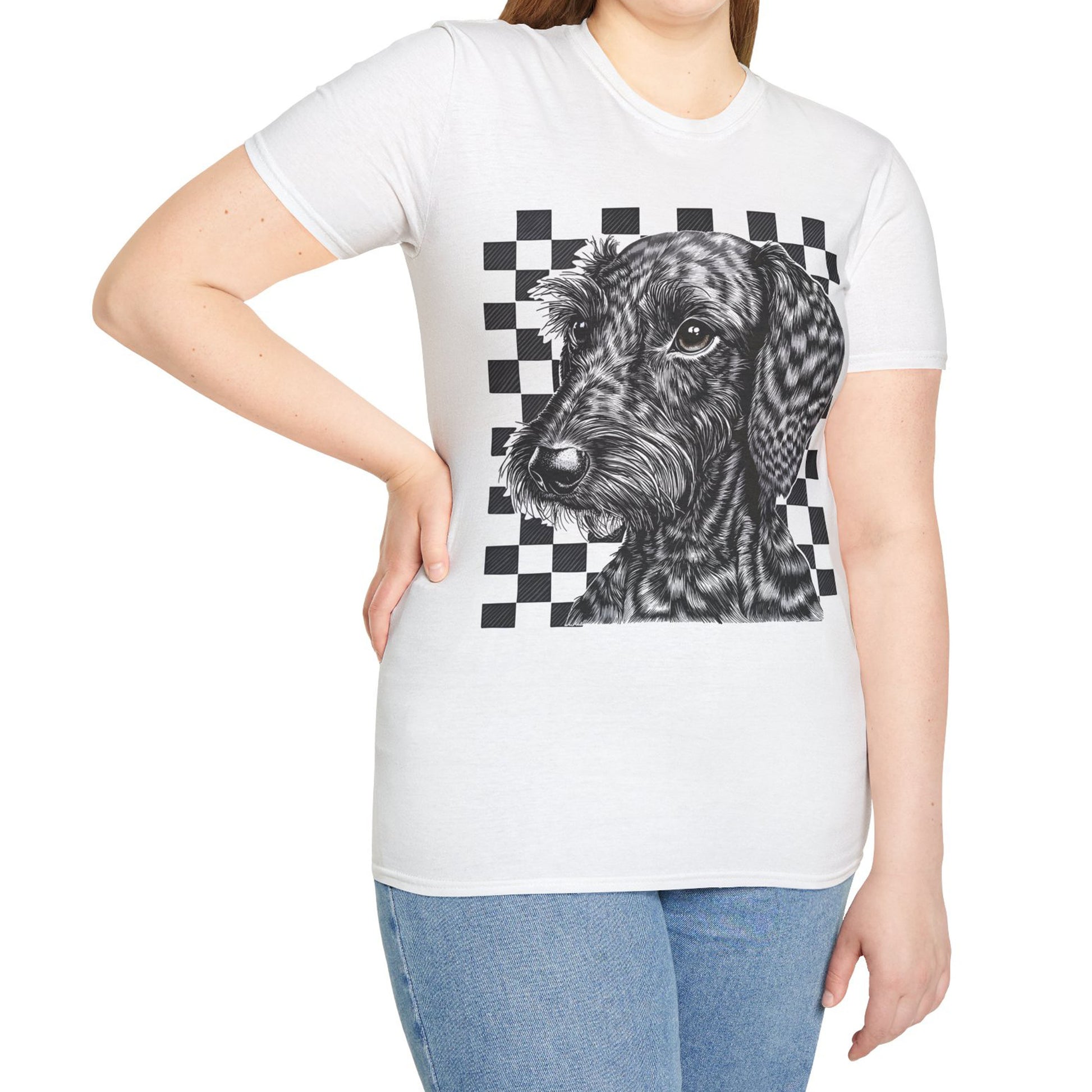 "Wired Check" Wire-Haired Dachshund Unisex Softstyle T-Shirt