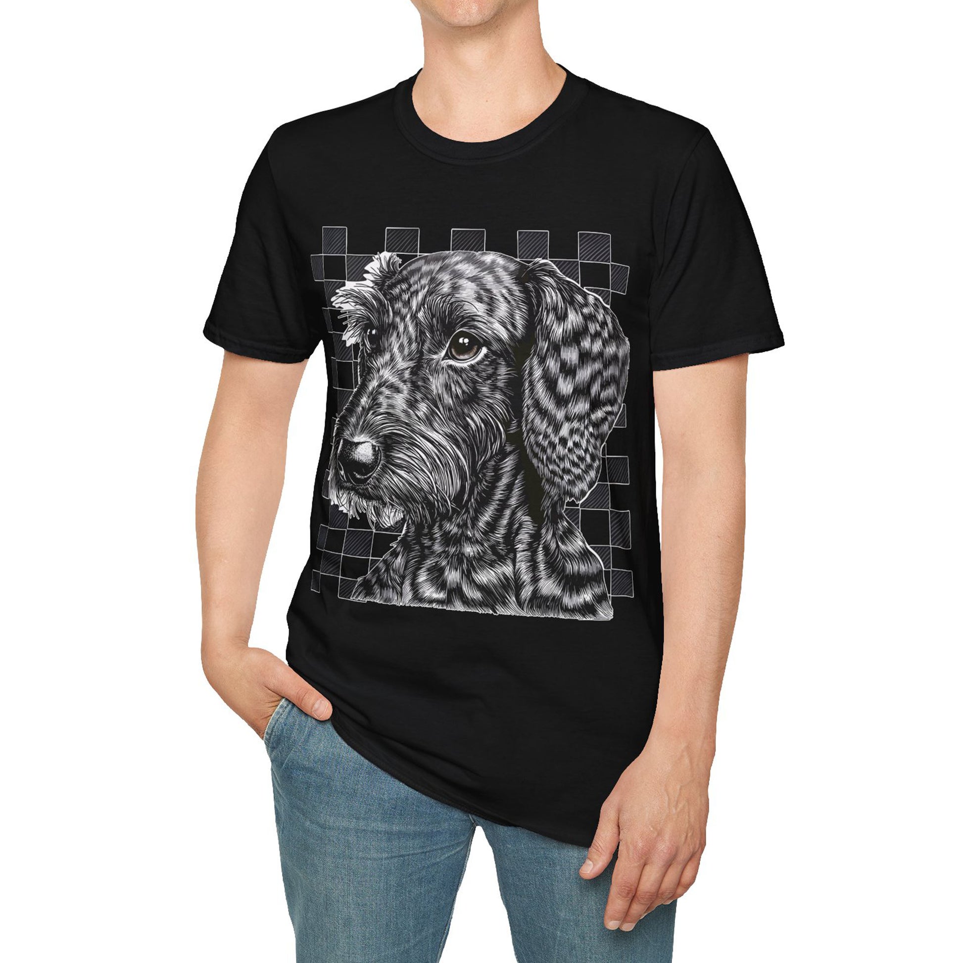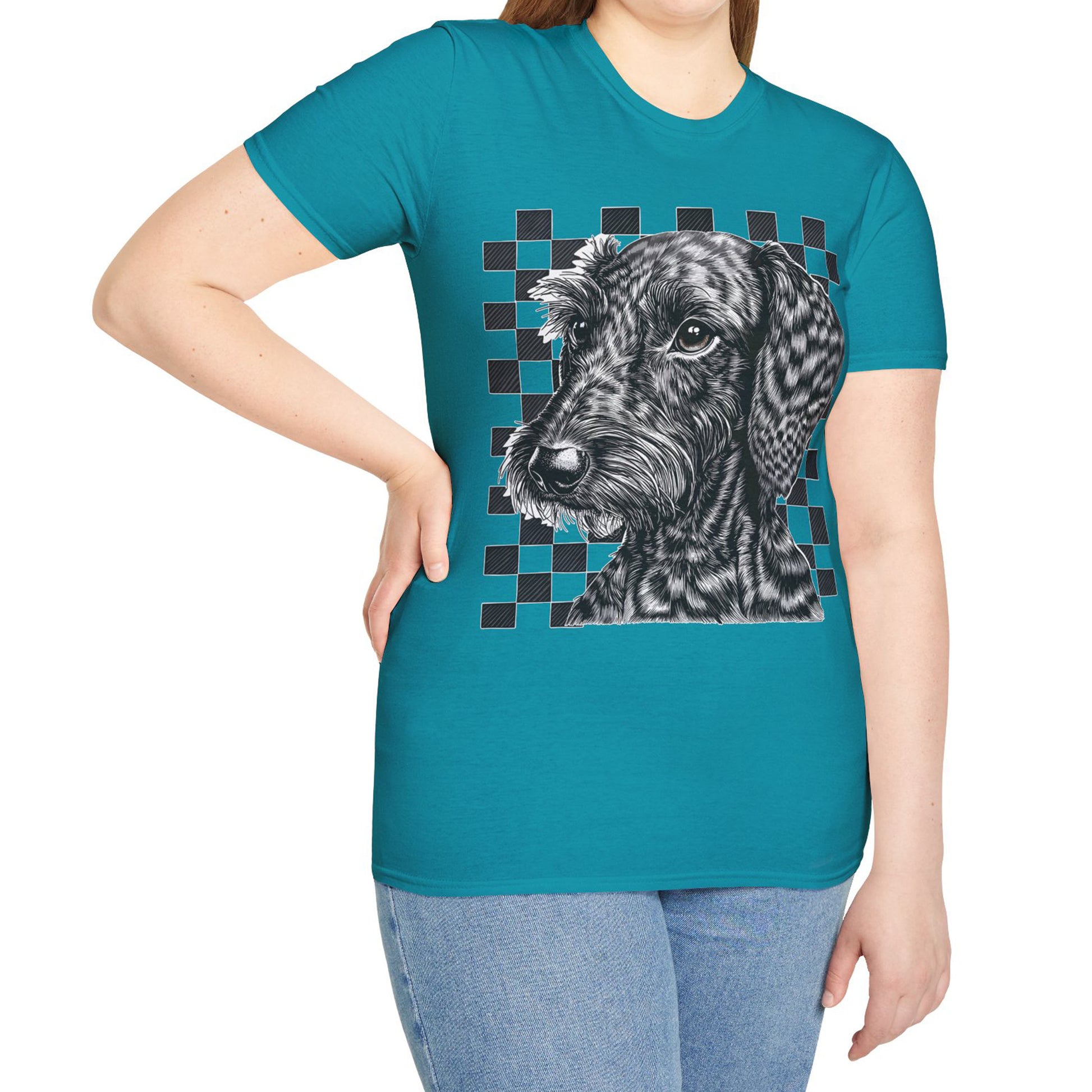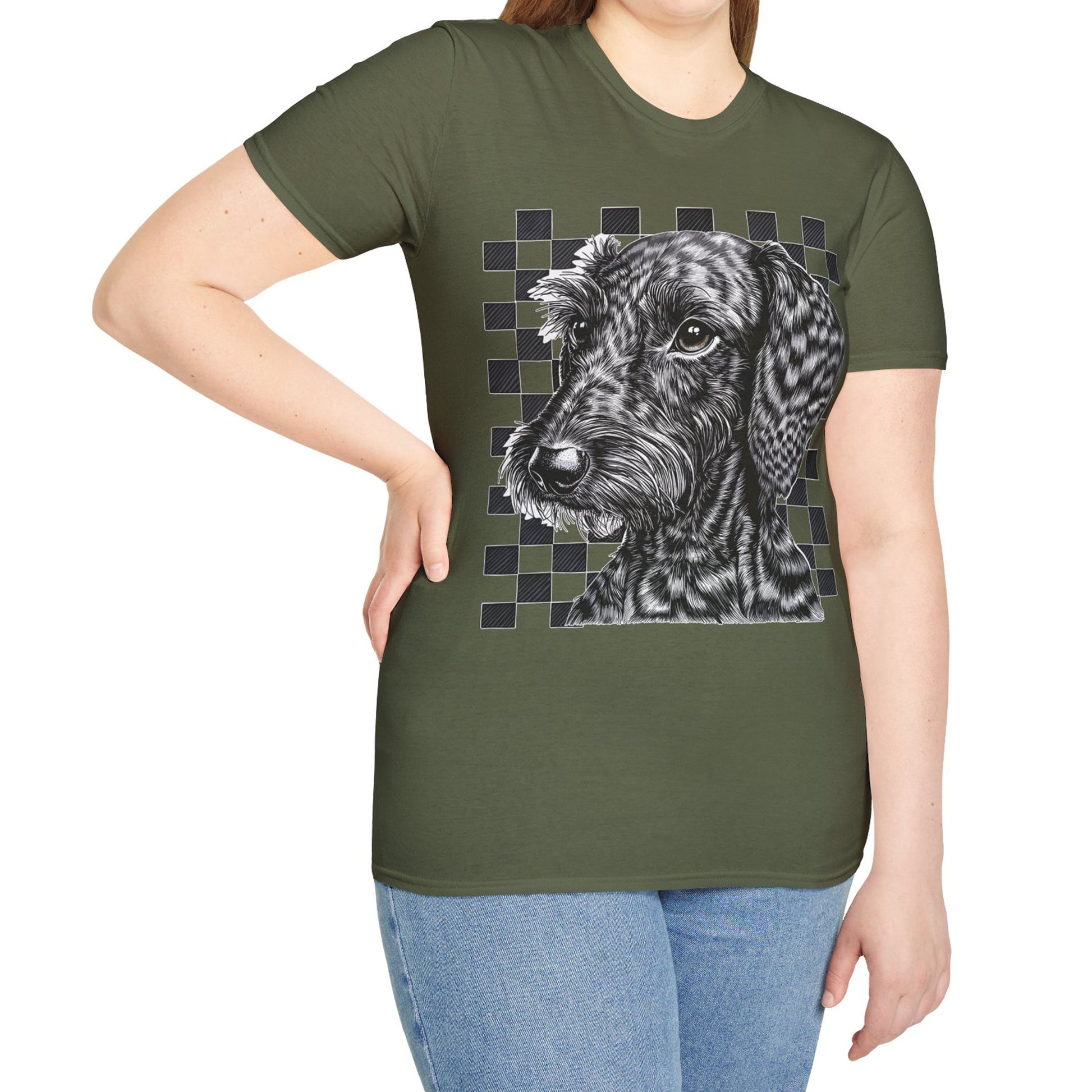 "Wired Check" Wire-Haired Dachshund Unisex Softstyle T-Shirt